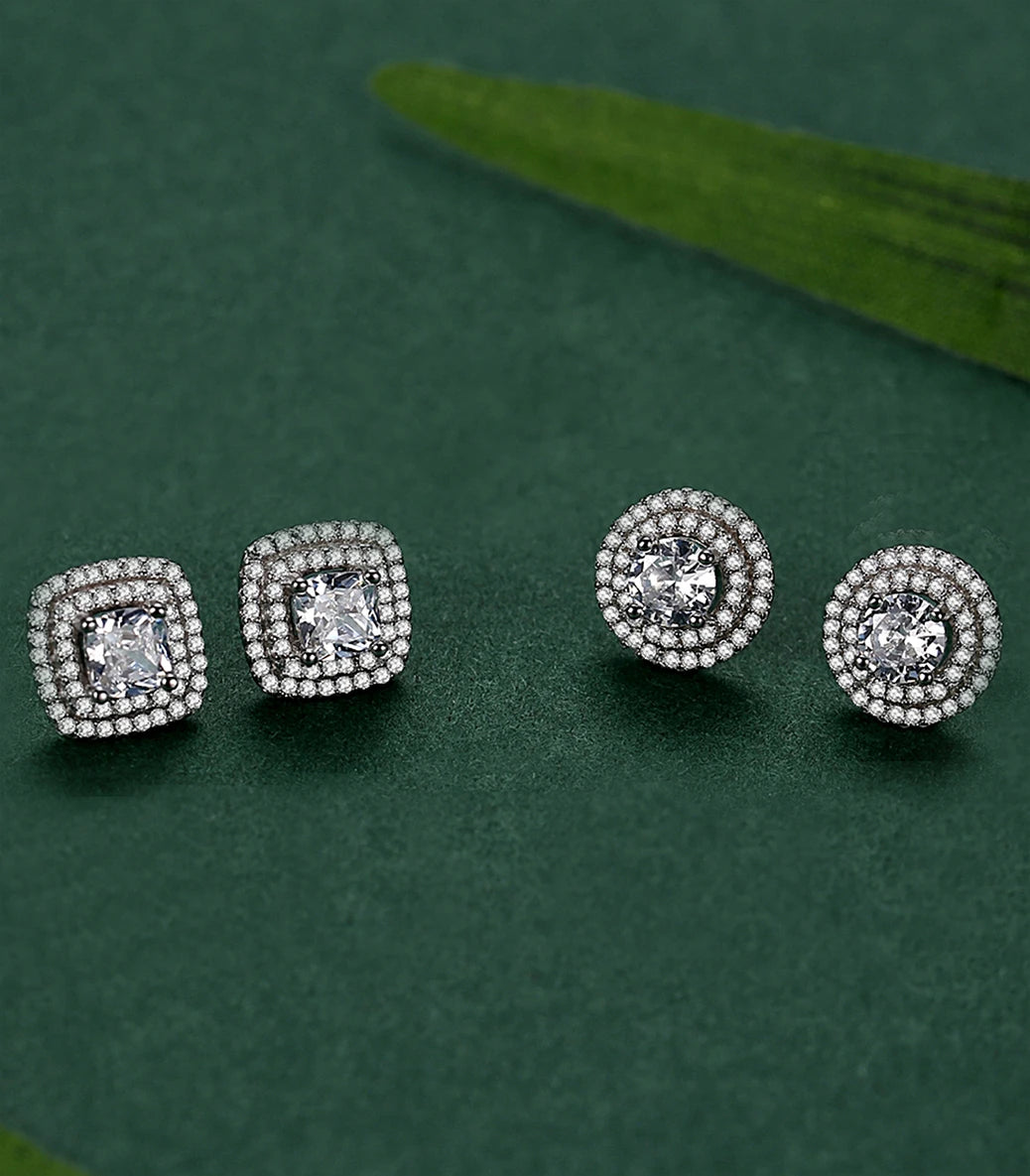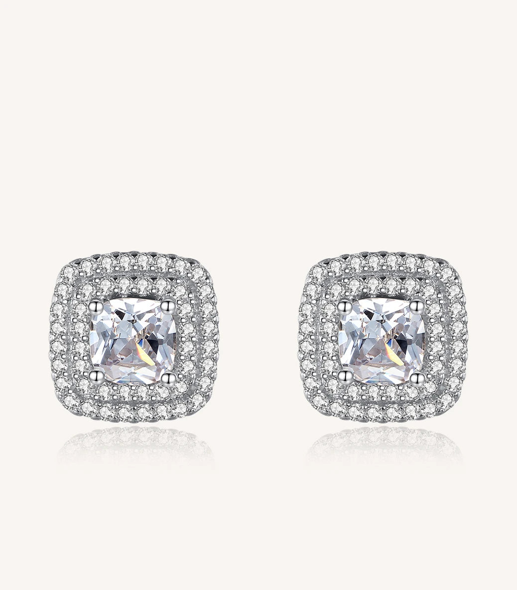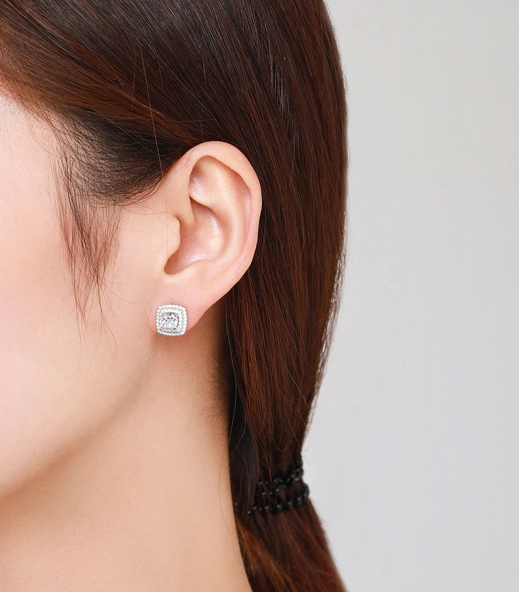Сребърни обeци с щифт и бял кубичен циркон клас ААА