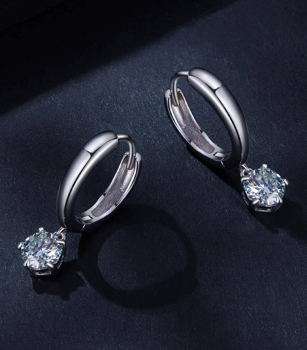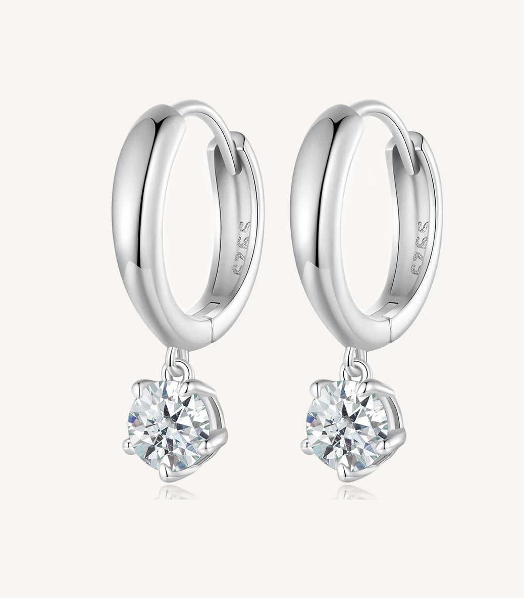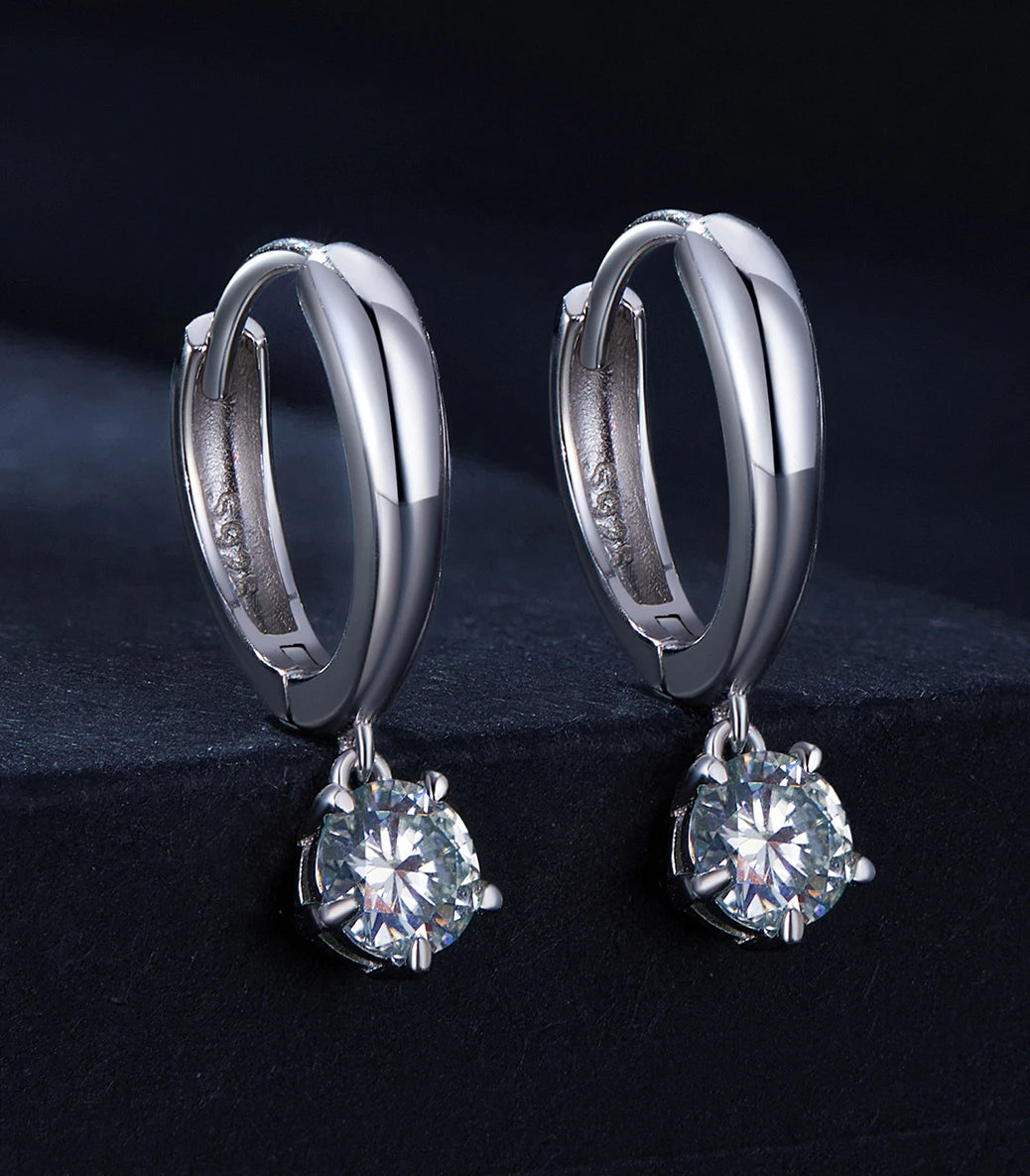 Сребърни обеци с английско закопчаване и скъпоценен камък мойсанит