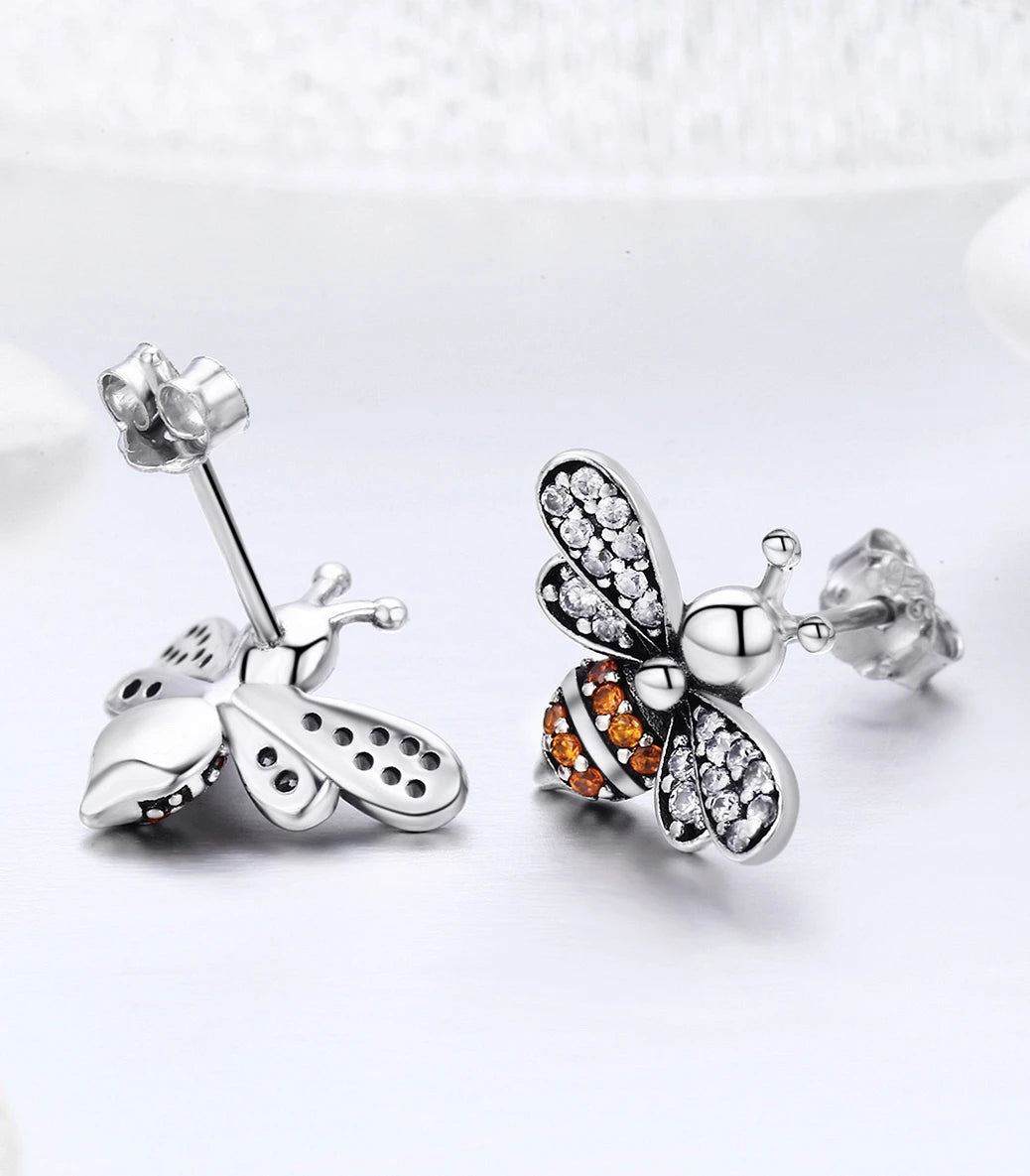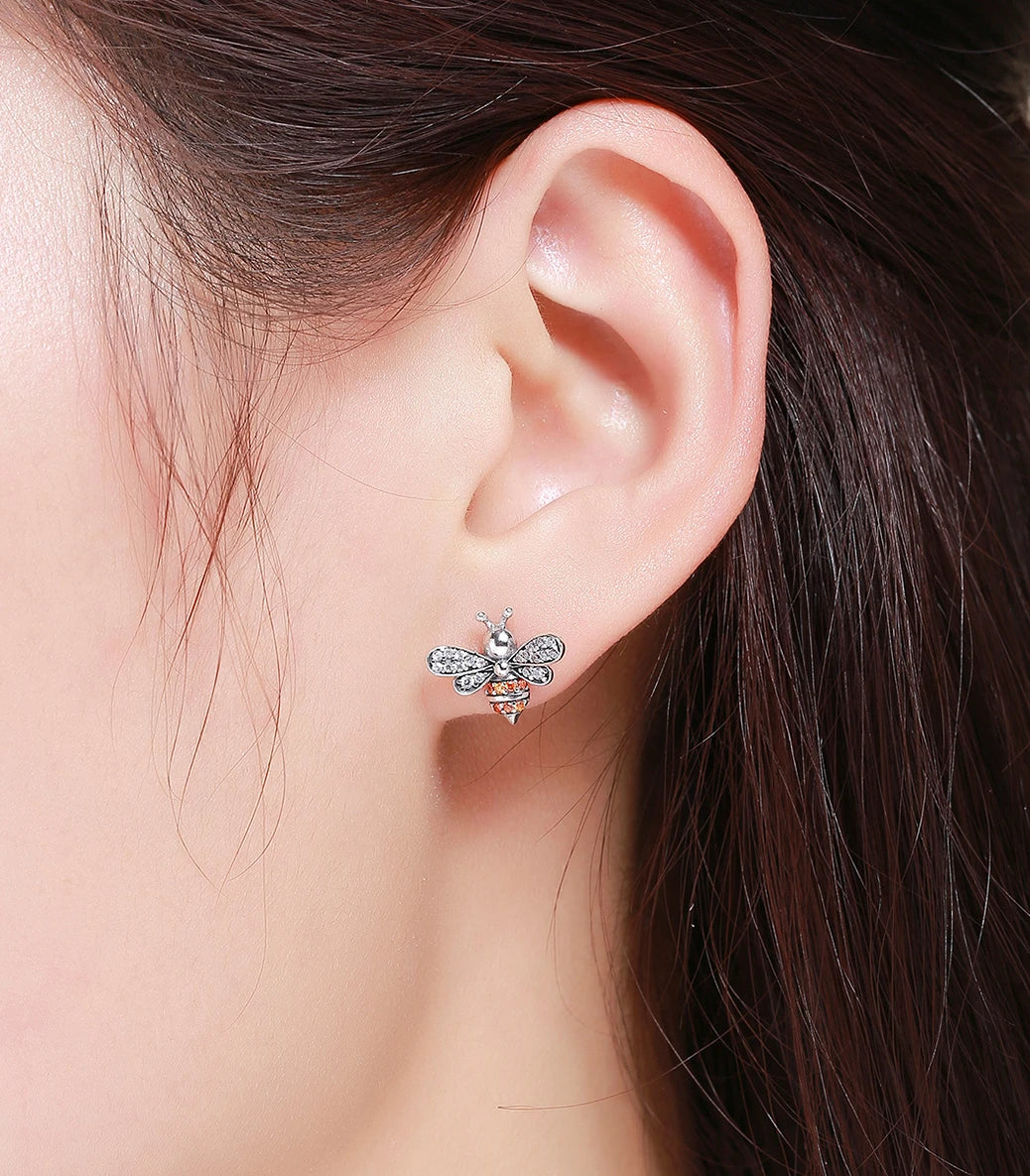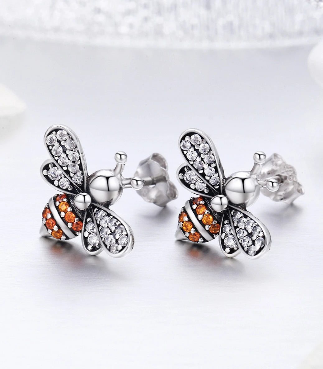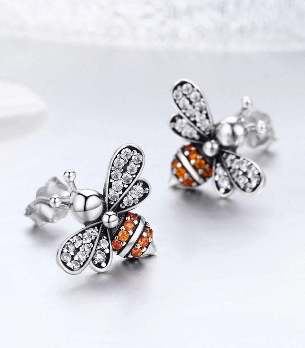 Сребърни обеци с щифт и бял и оранжев кубичен циркон