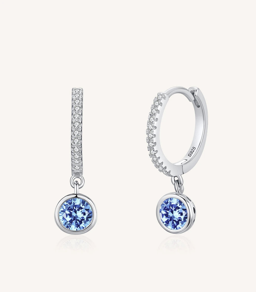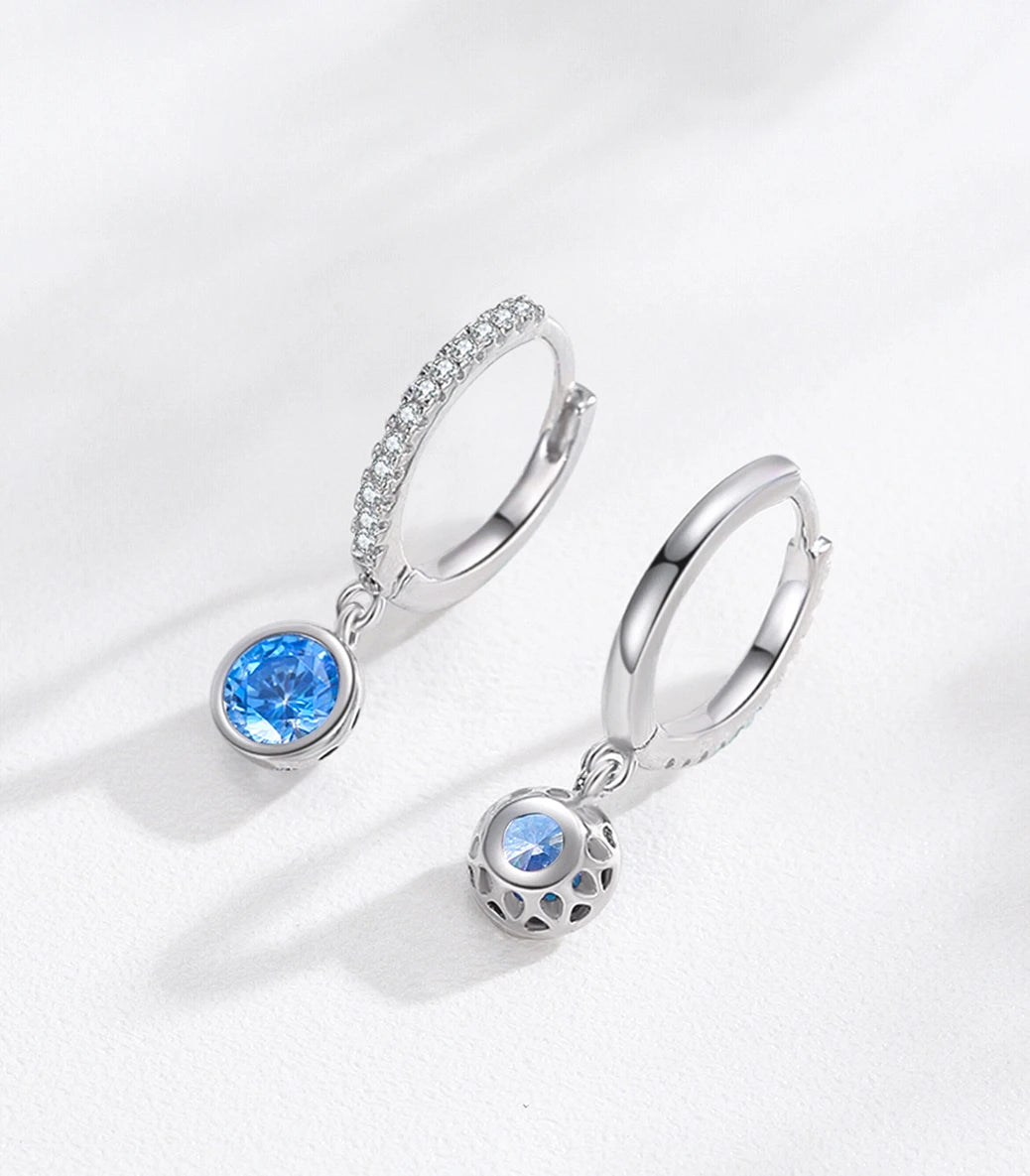 Сребърни обеци с бял и син кубичен циркон и английско закопчаване