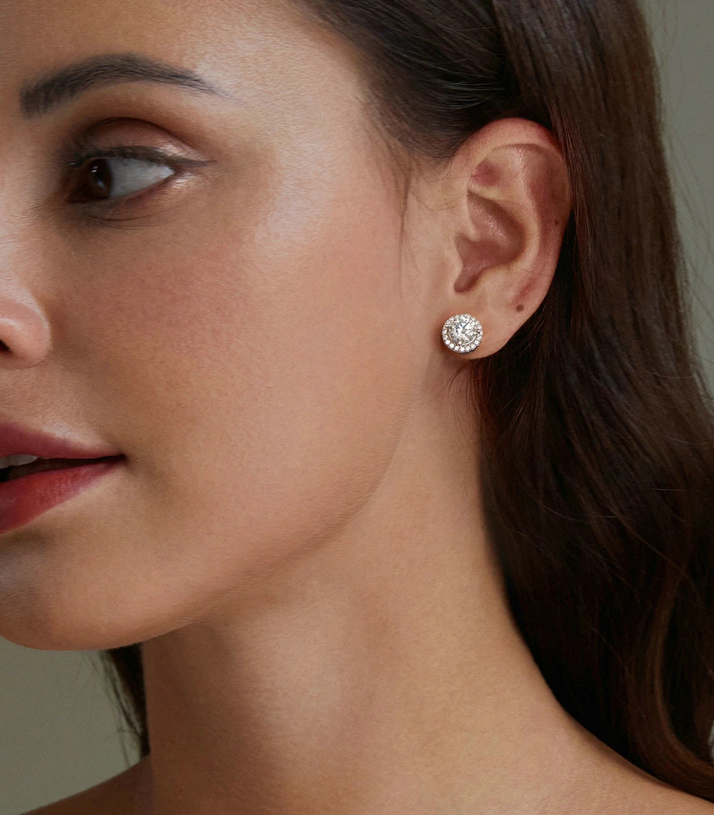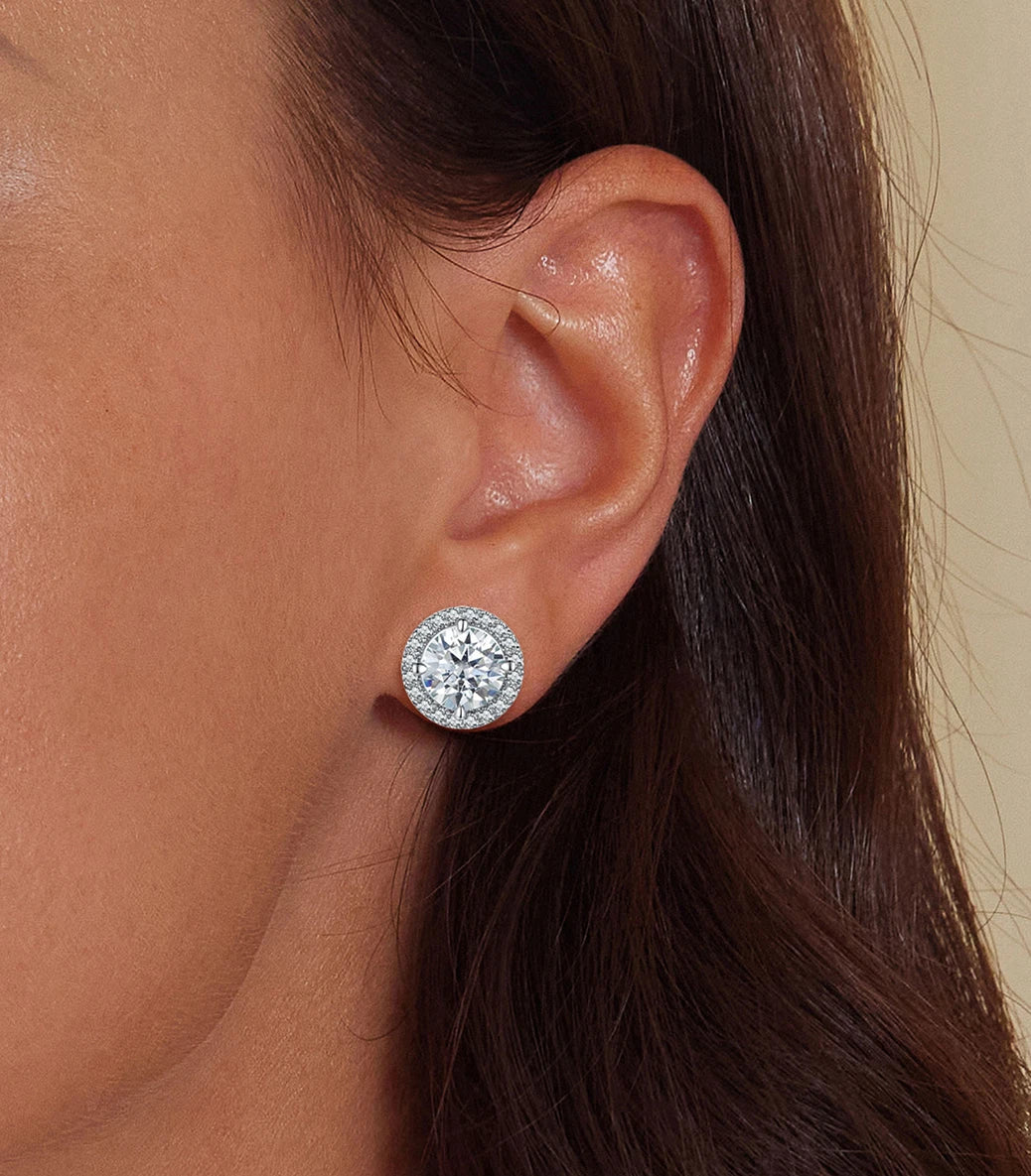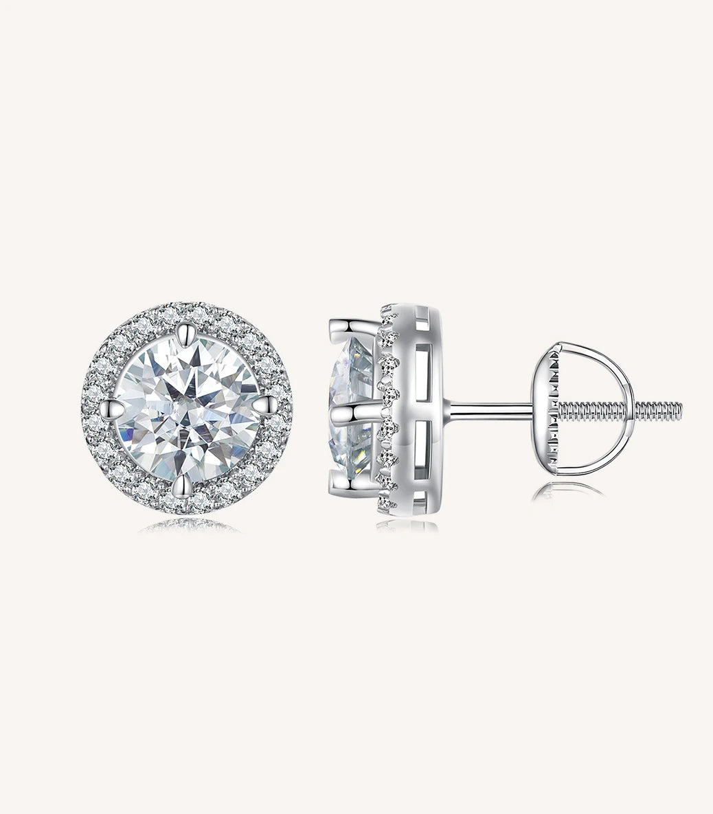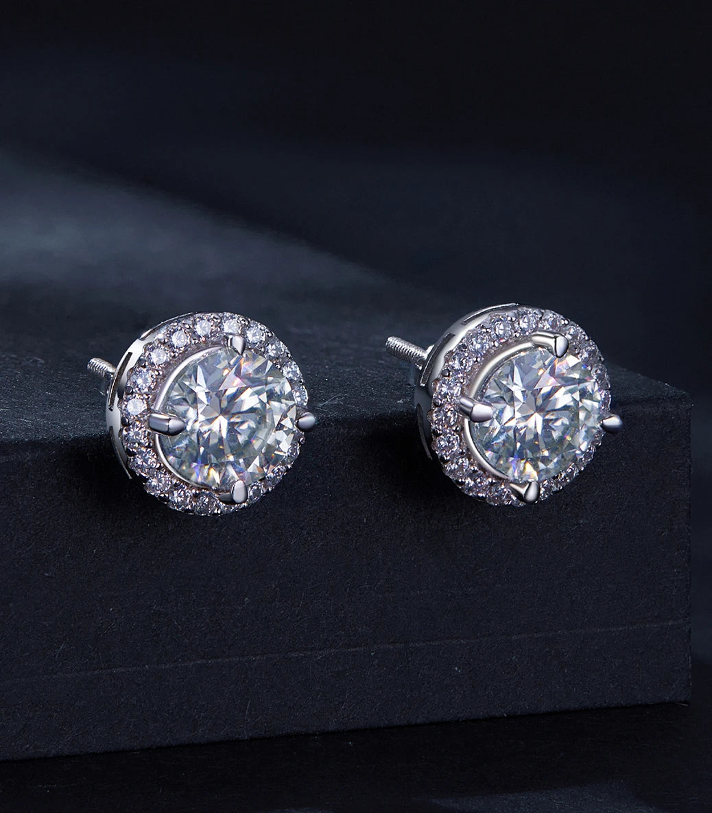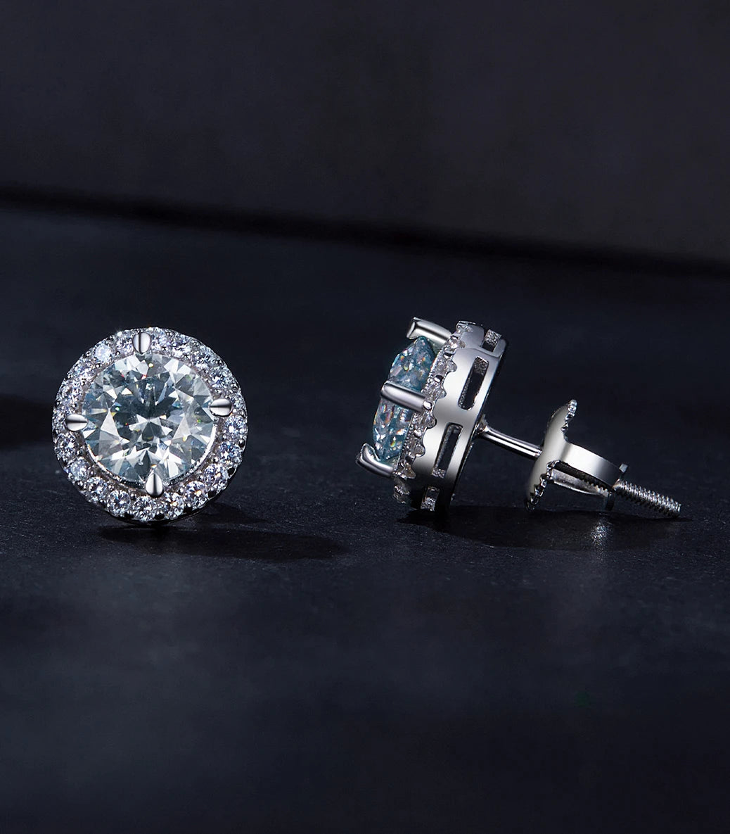 Сребърни обеци с винт , скъпоценен камък мойсанит и бял кубичен циркон