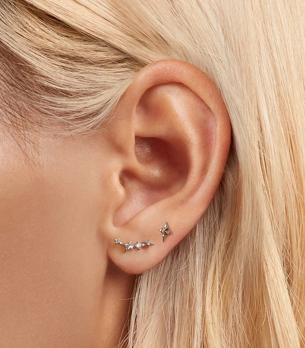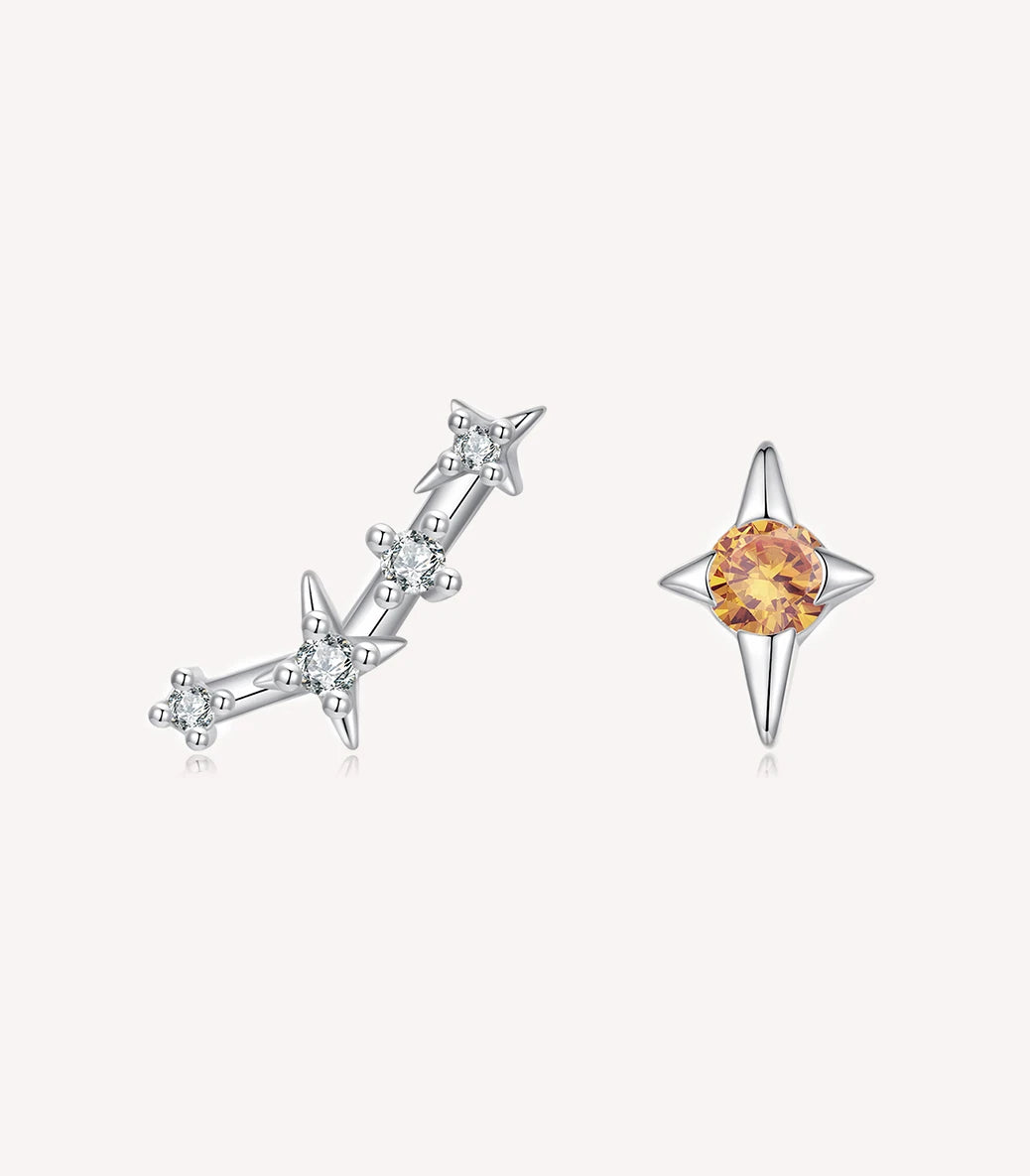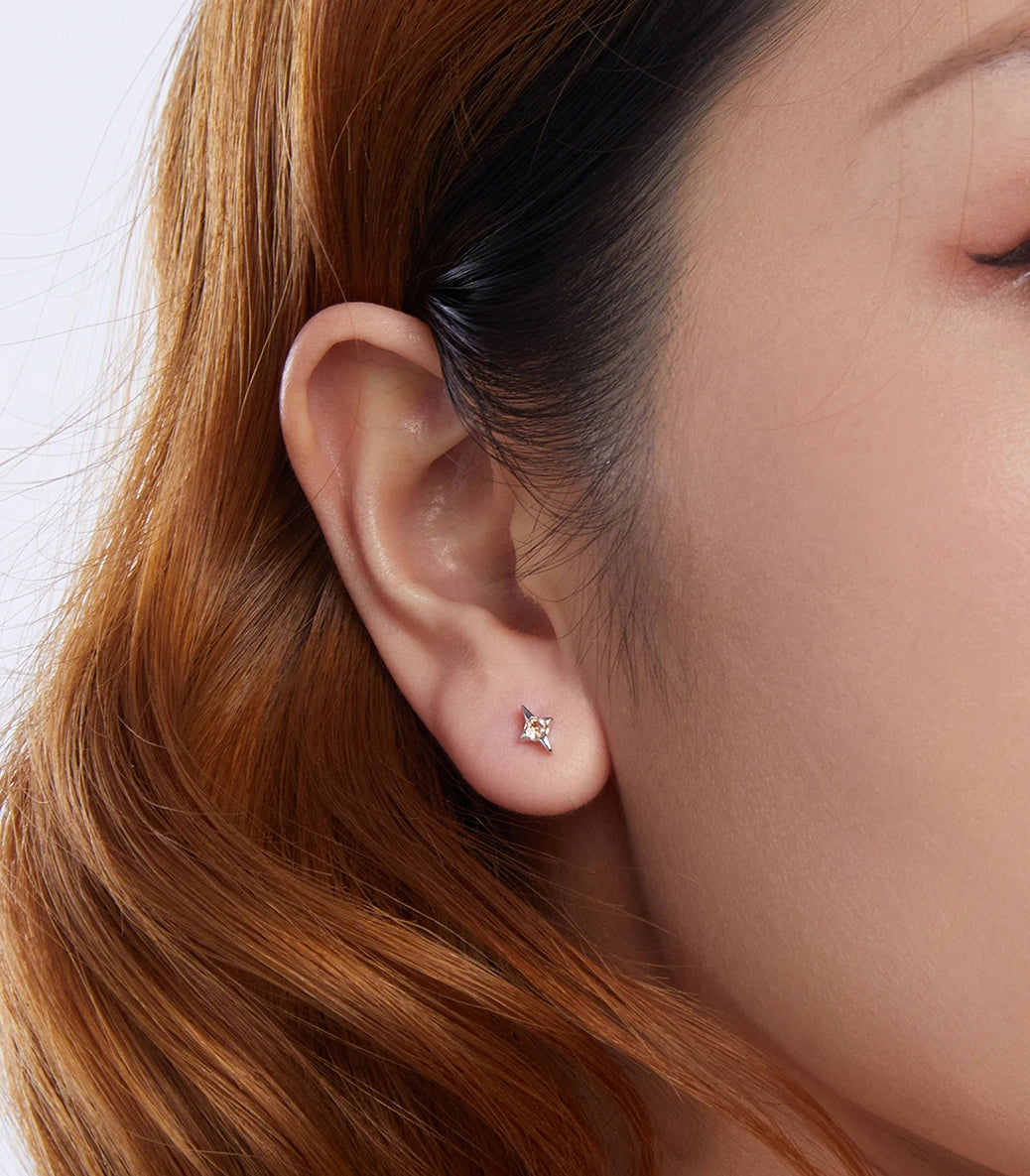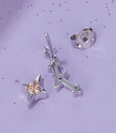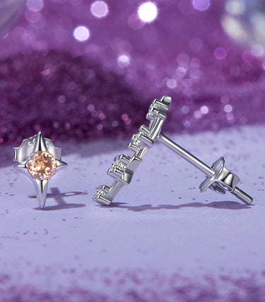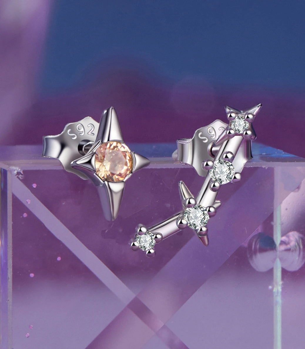 Сребърни обеци с щифт и бял и оранжев кубичен циркон