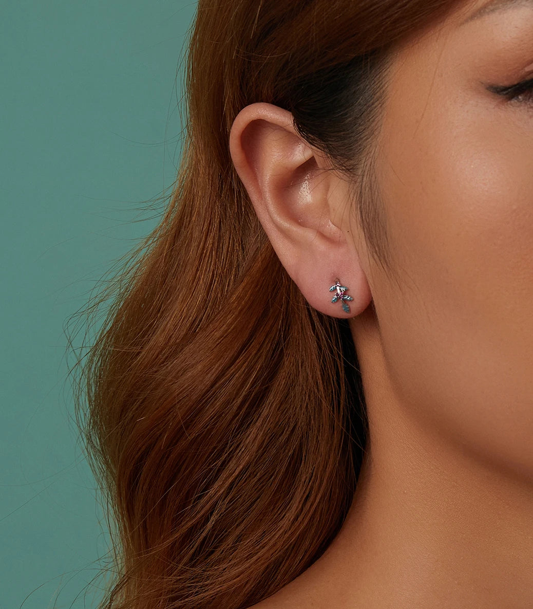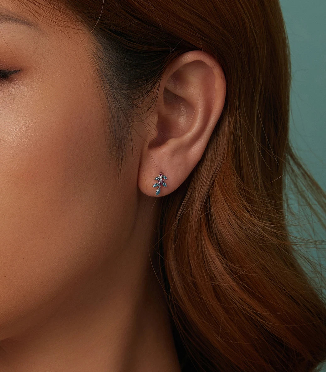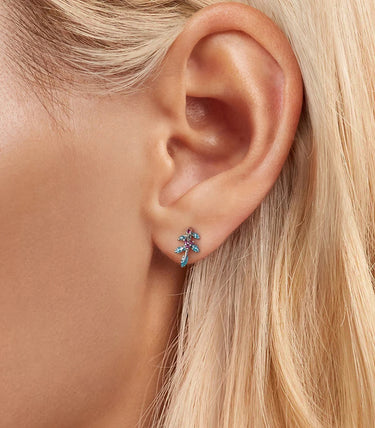 Сребърни обeци с виолетов кубичен циркон и тюркоазен емайл