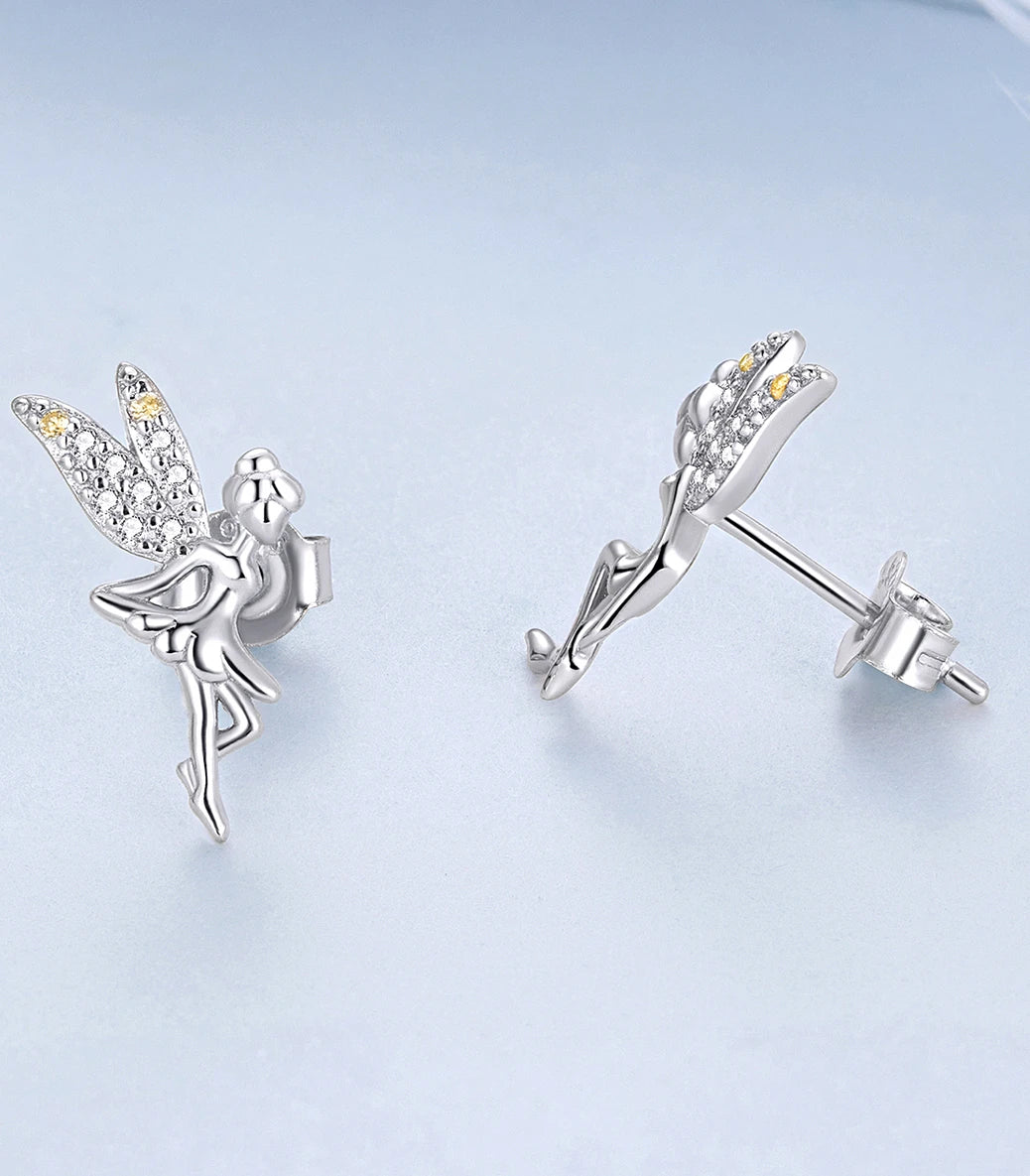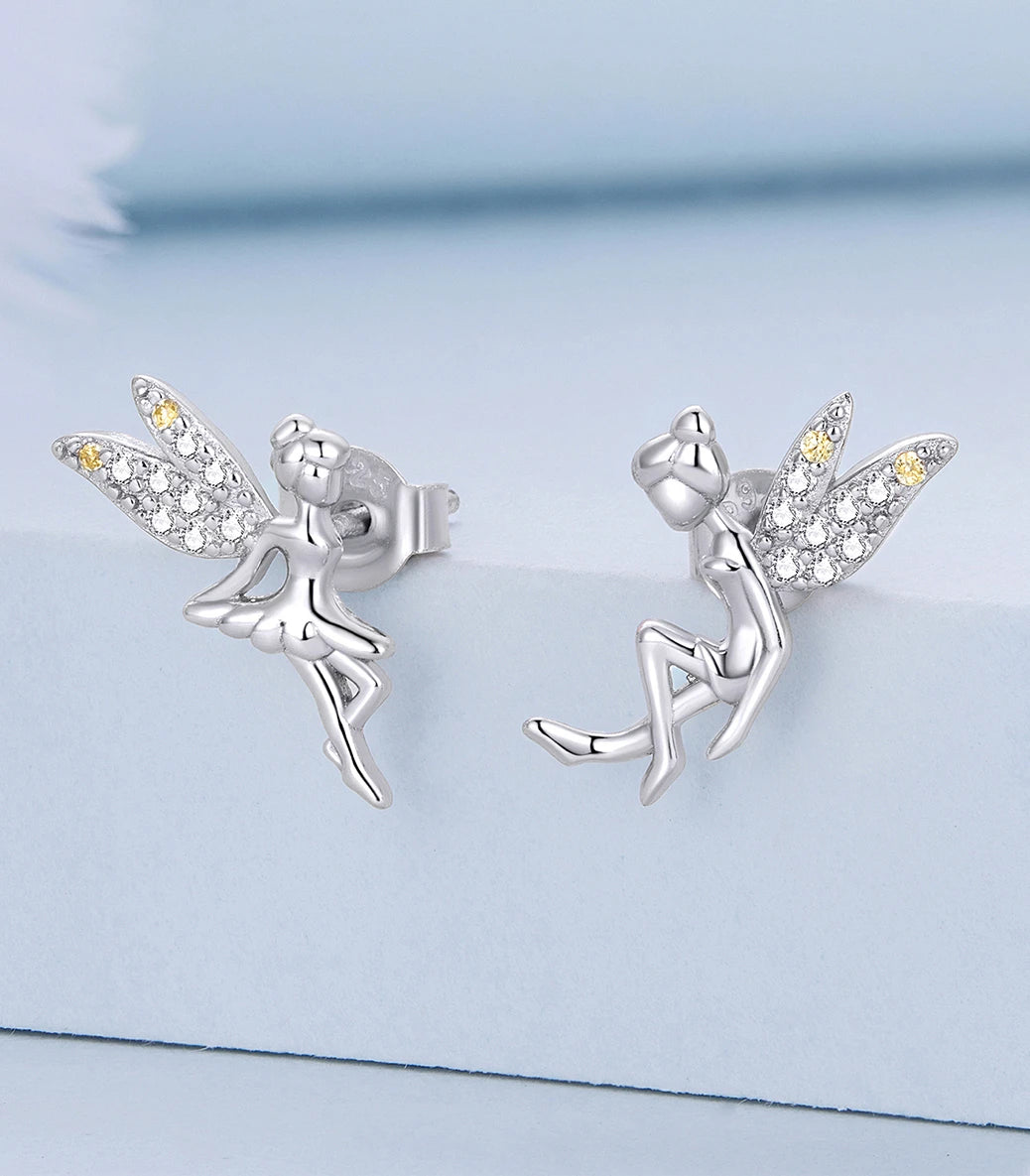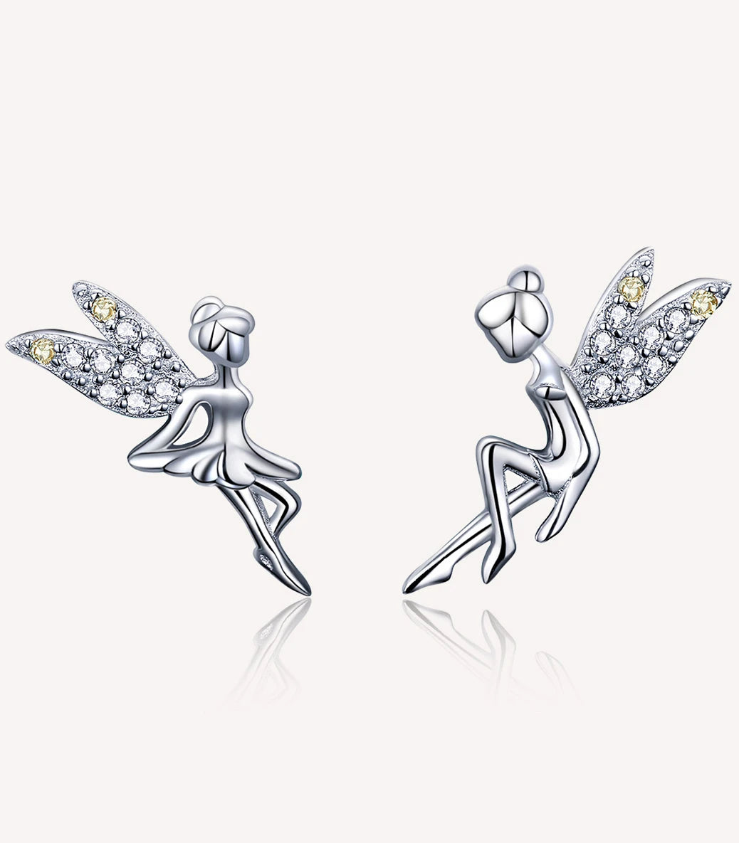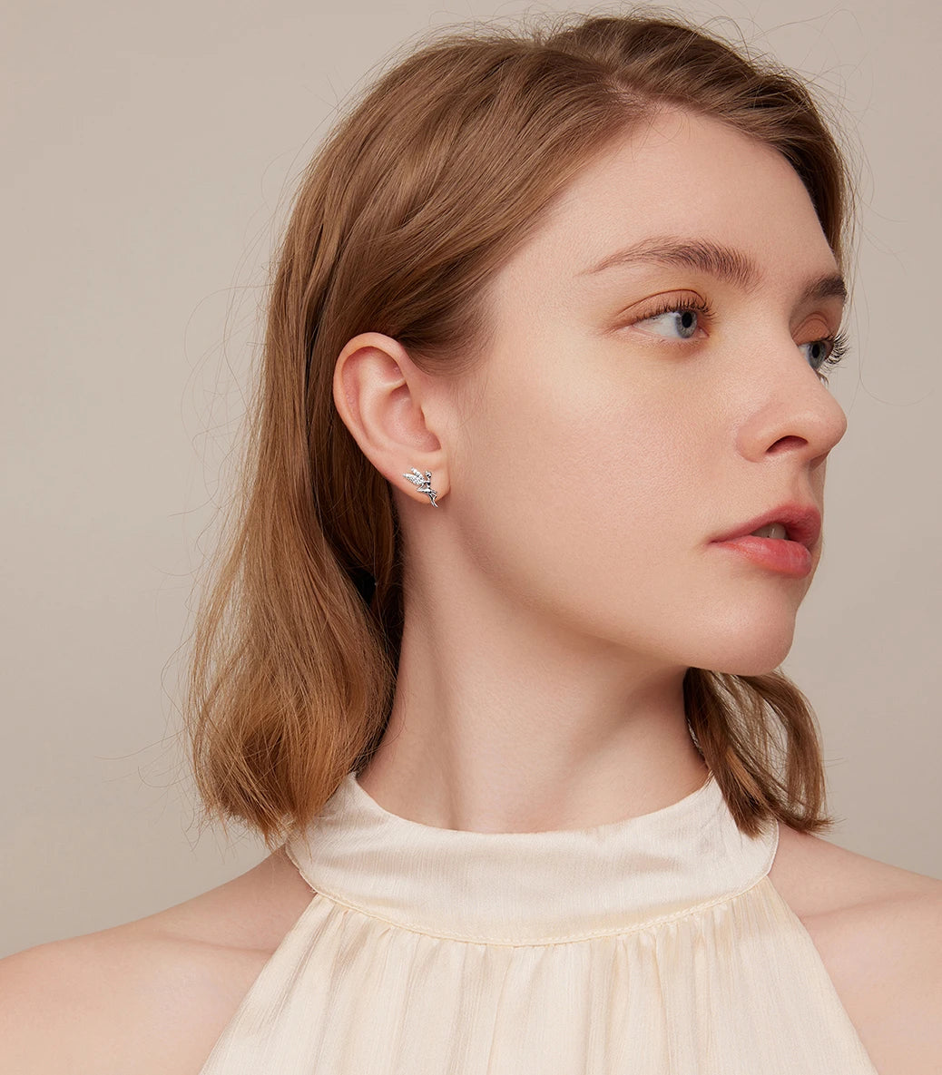 Сребърни обeци с щифт и бял и жълт кубичен циркон