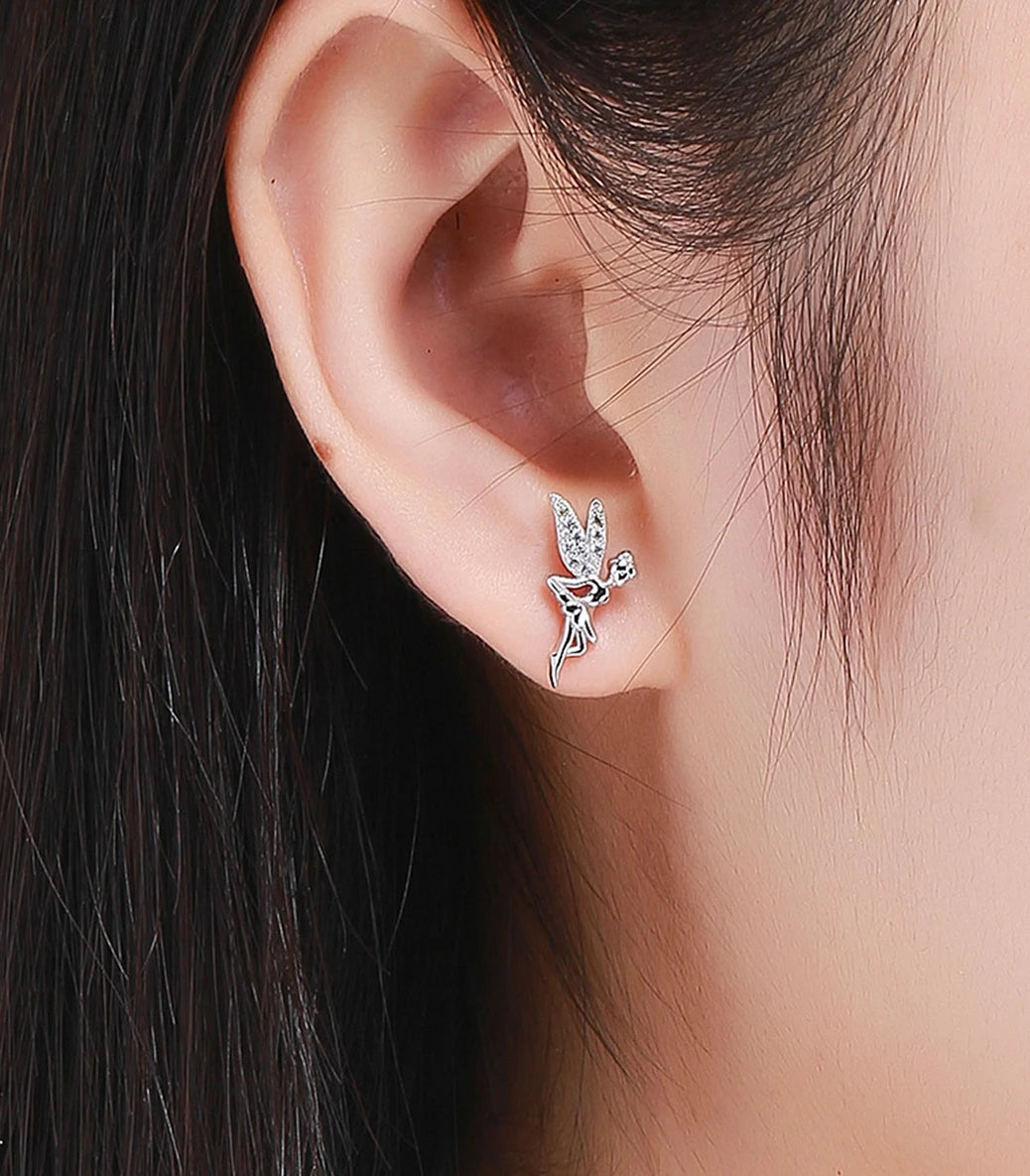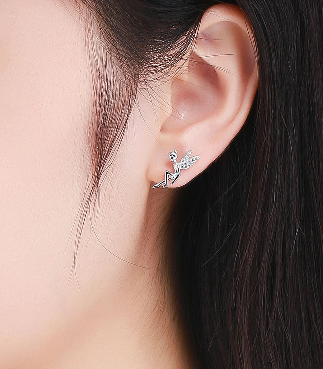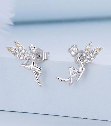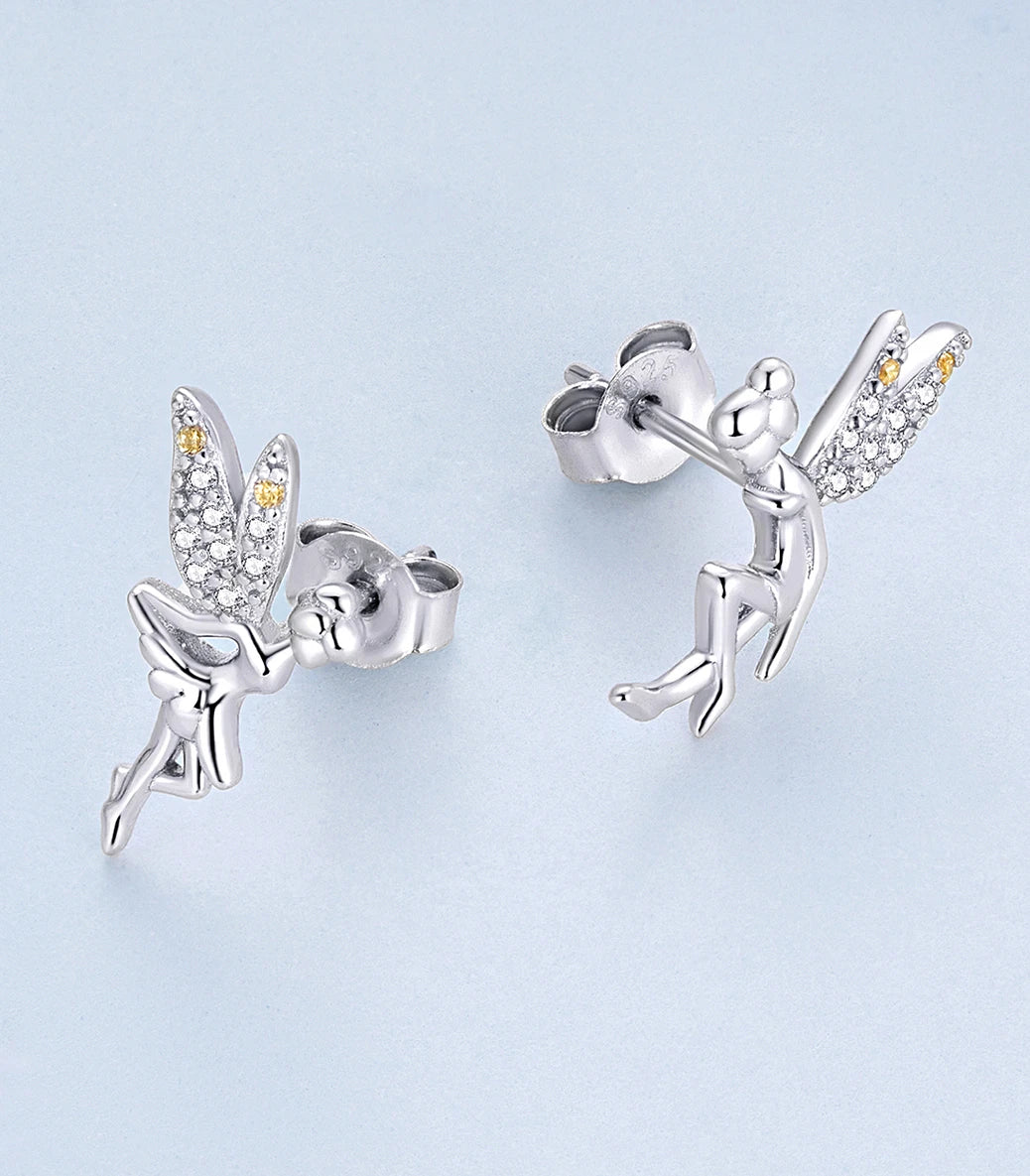 Сребърни обeци с щифт и бял и жълт кубичен циркон