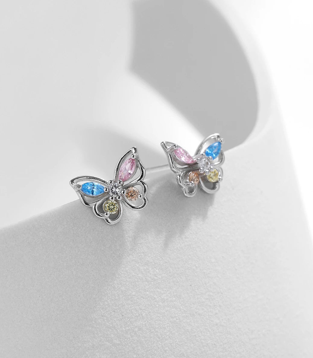 Сребърни обеци с щифт и разноцветен кубичен циркон