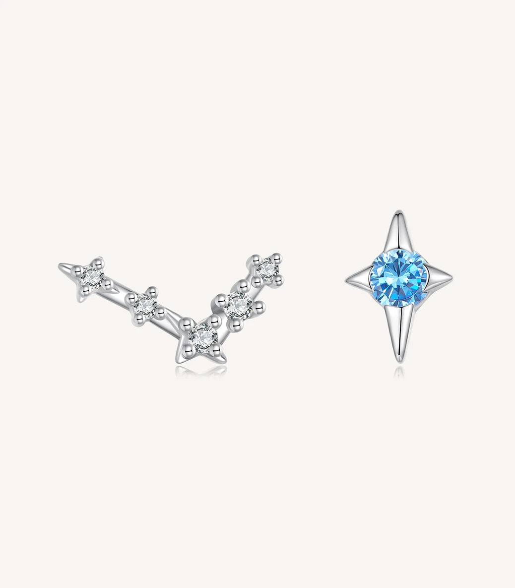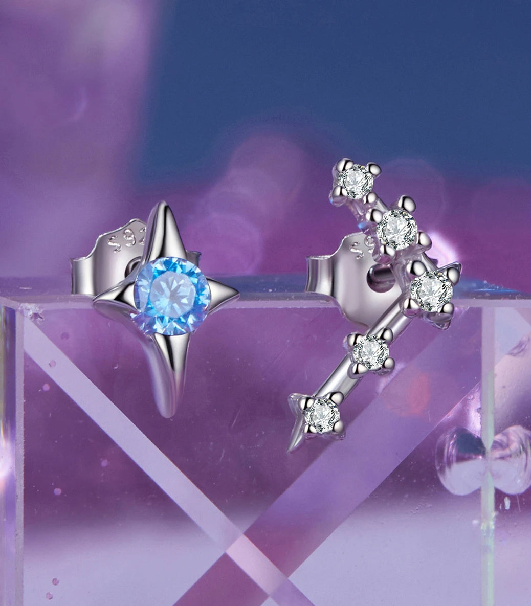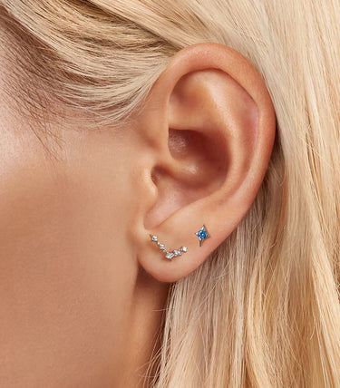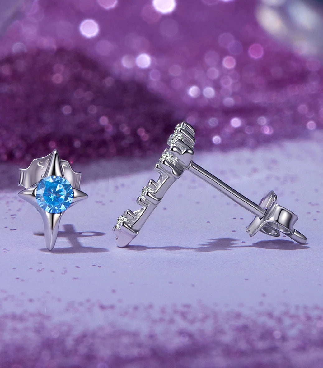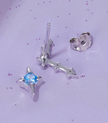 Сребърни обеци с щифт и бял и син кубичен циркон