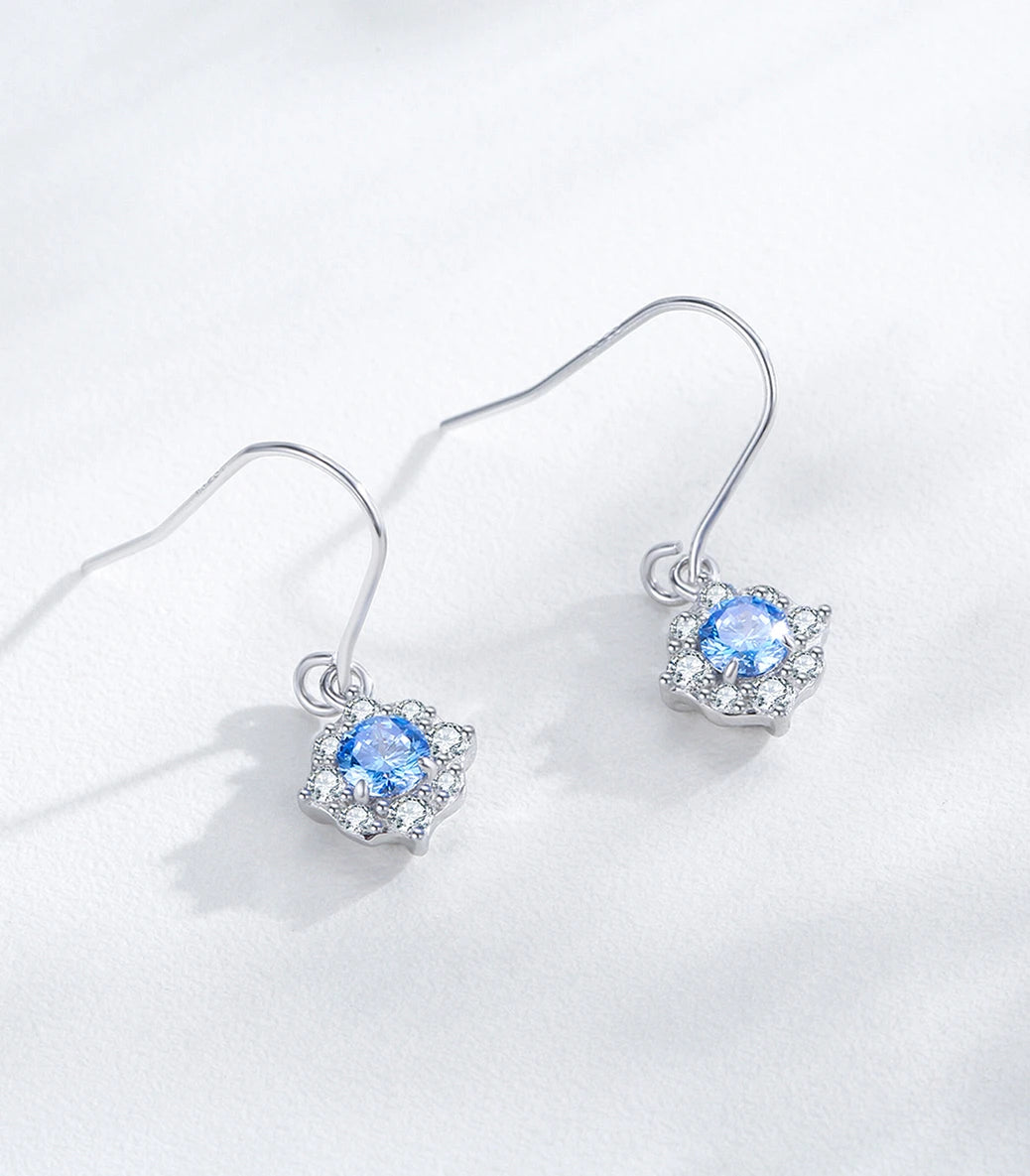 Сребърни обeци със син и бял кубичен циркон