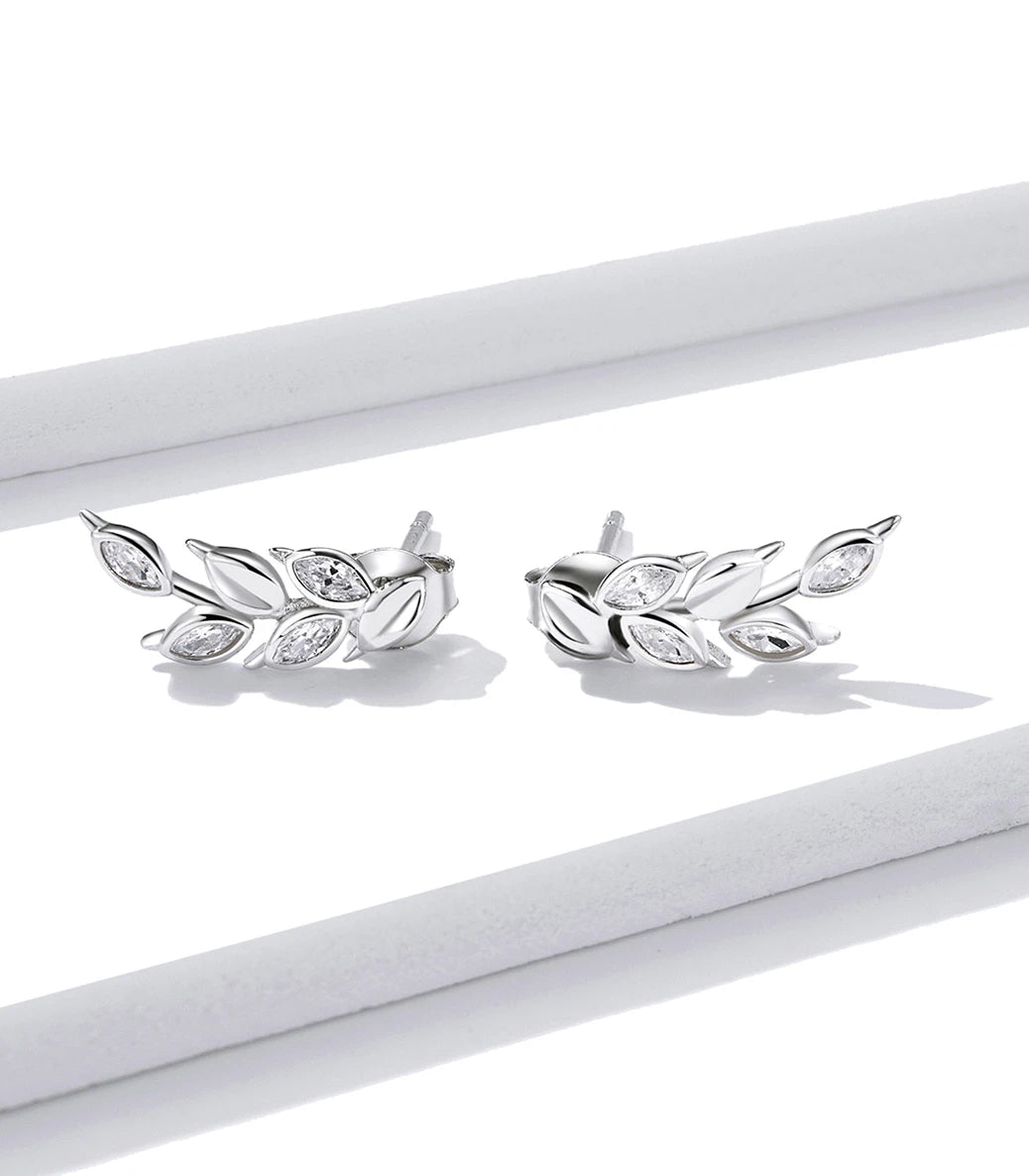 Сребърни обeци с щифт и бял кубичен циркон