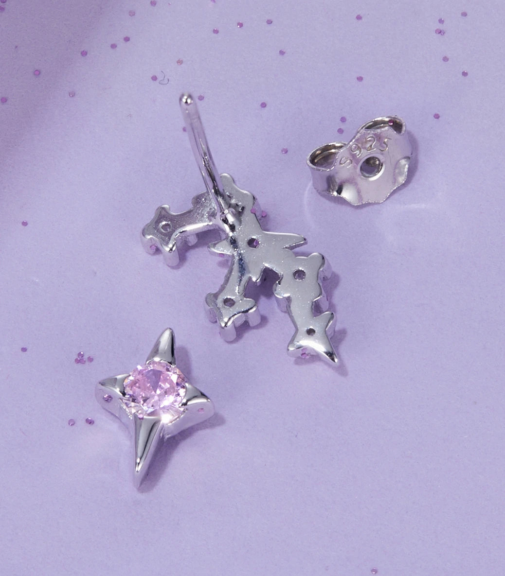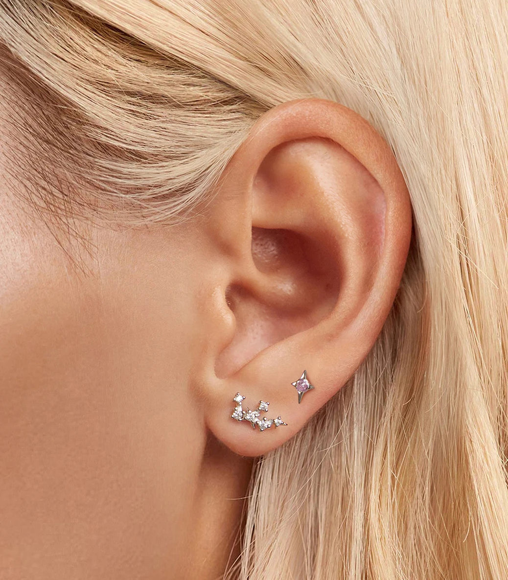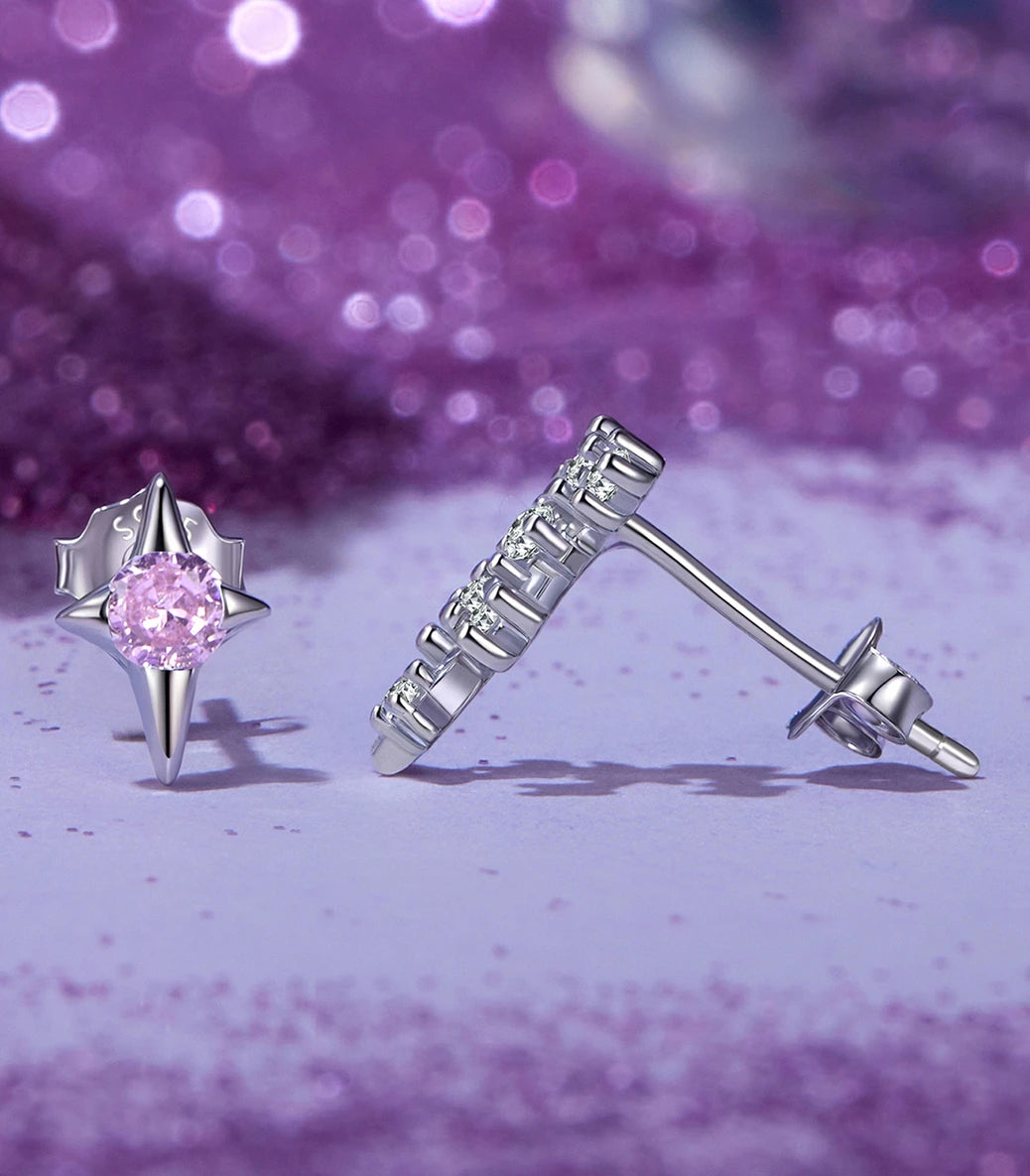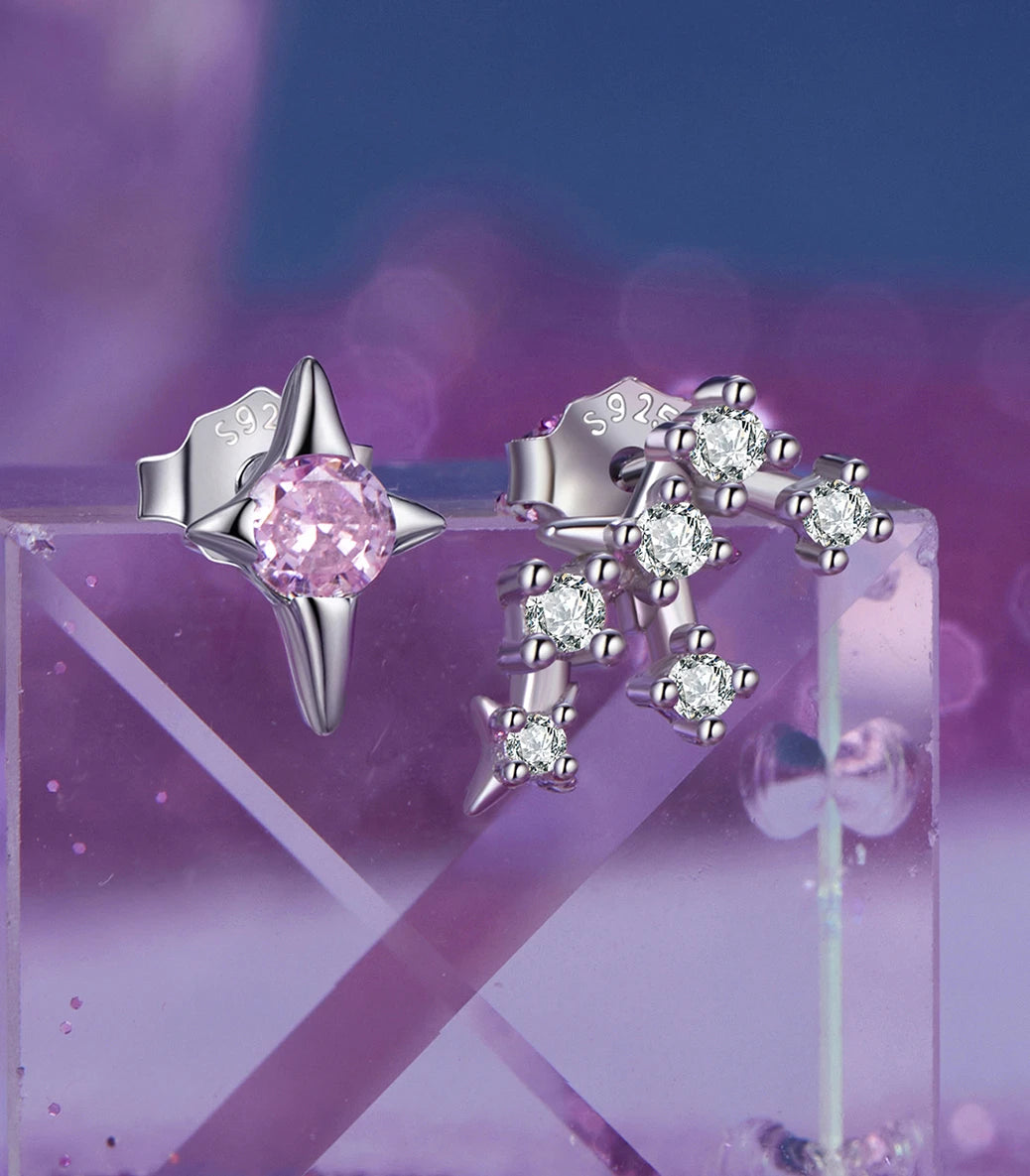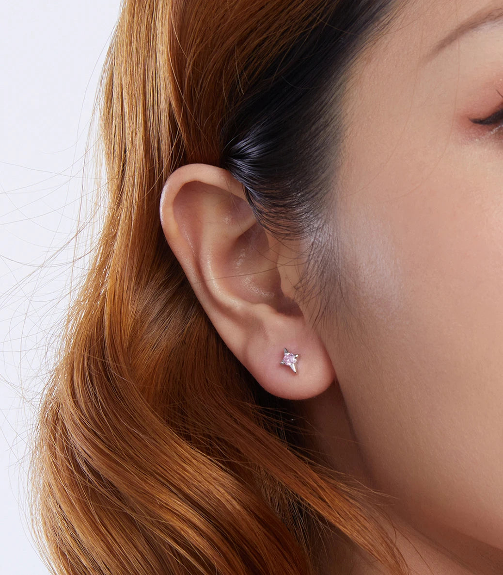 Сребърни обеци с щифт и бял и розов кубичен циркон