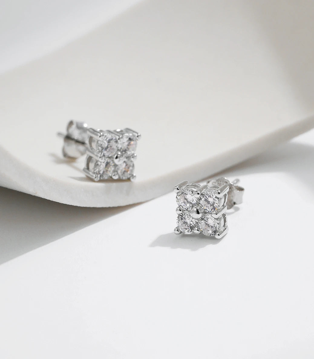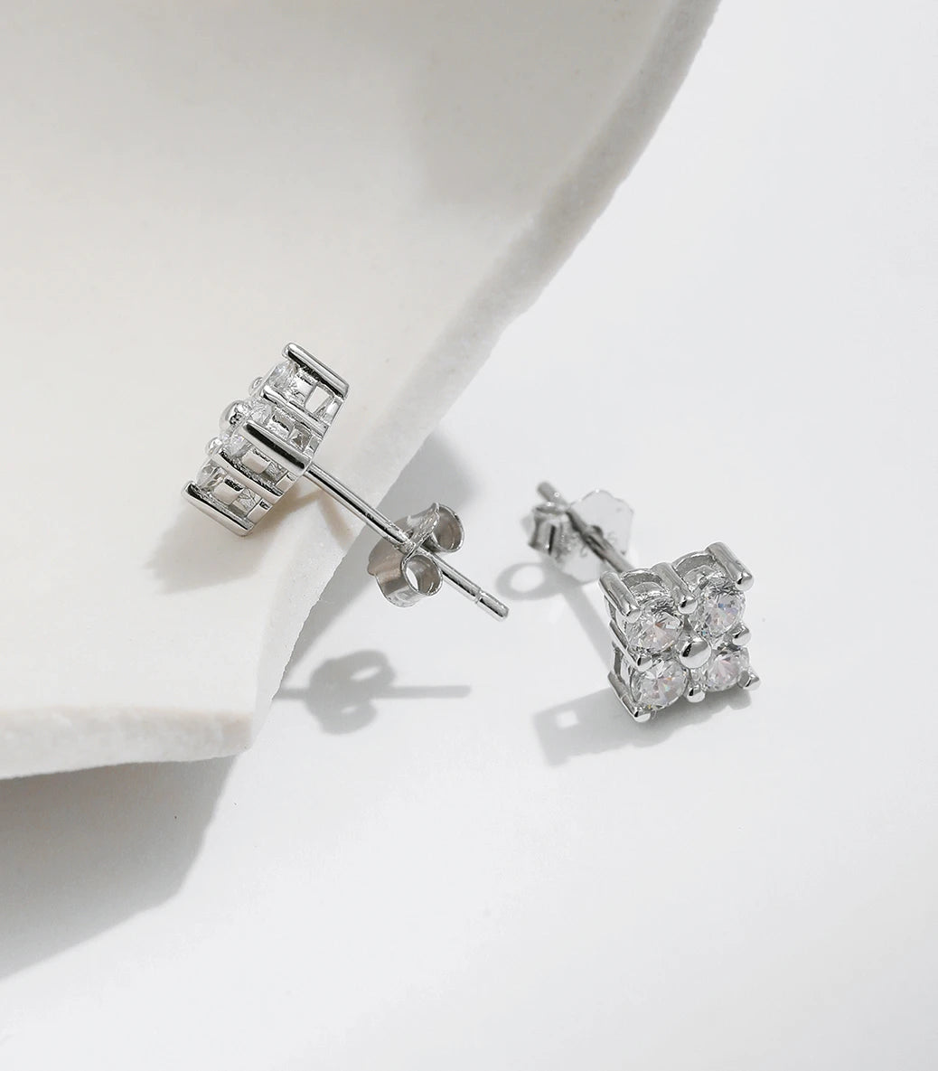 Сребърни обeци с винт и скъпоценния камък мойсанит
