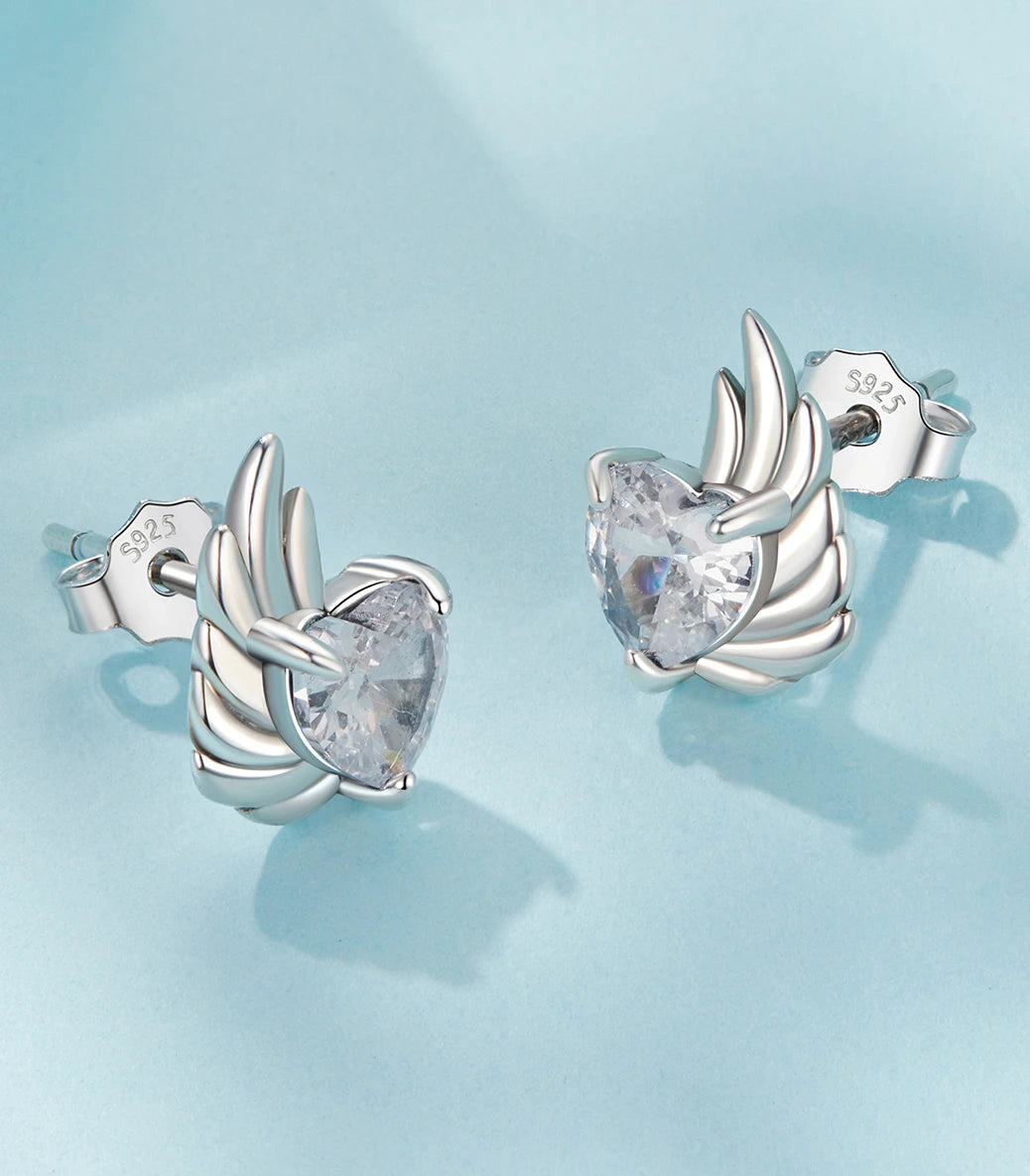 Сребърни обеци с щифт и бял кубичен циркон