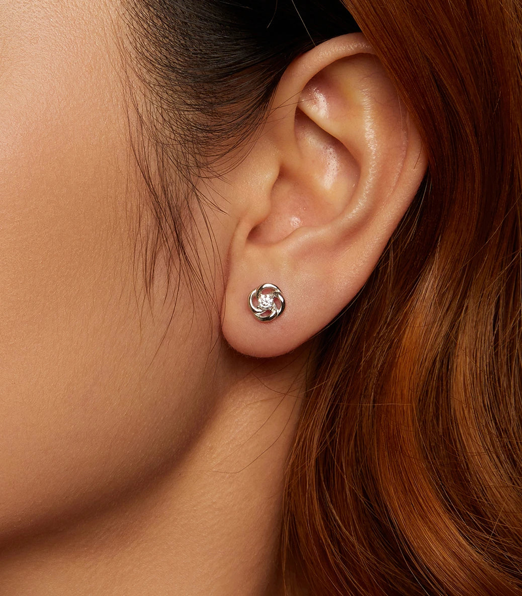 Сребърни обeци с винт и скъпоценния камък мойсанит