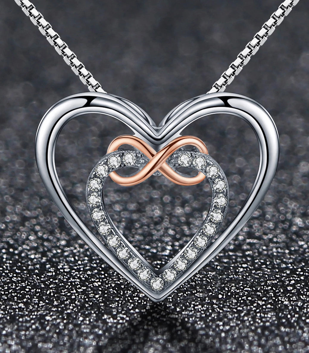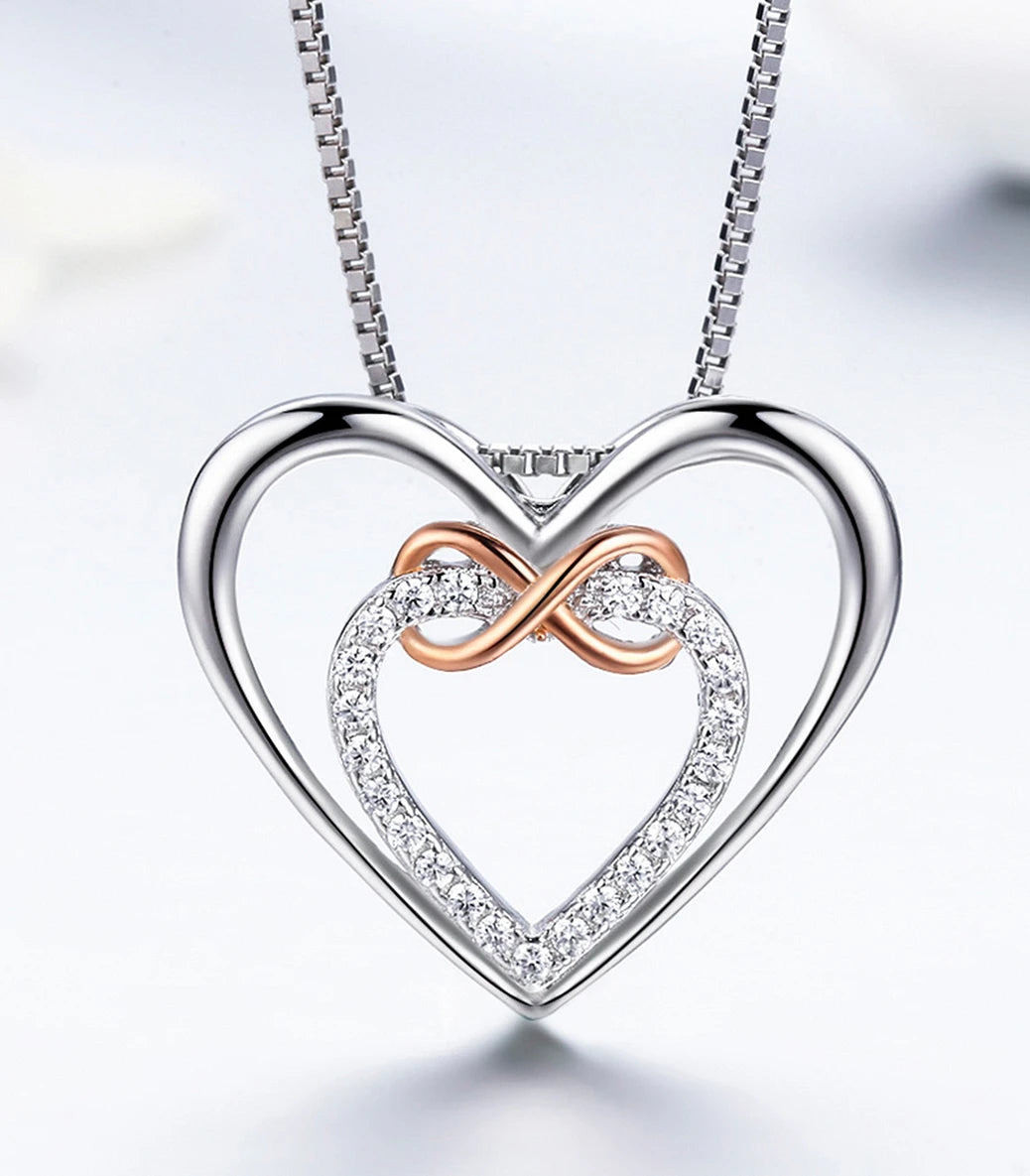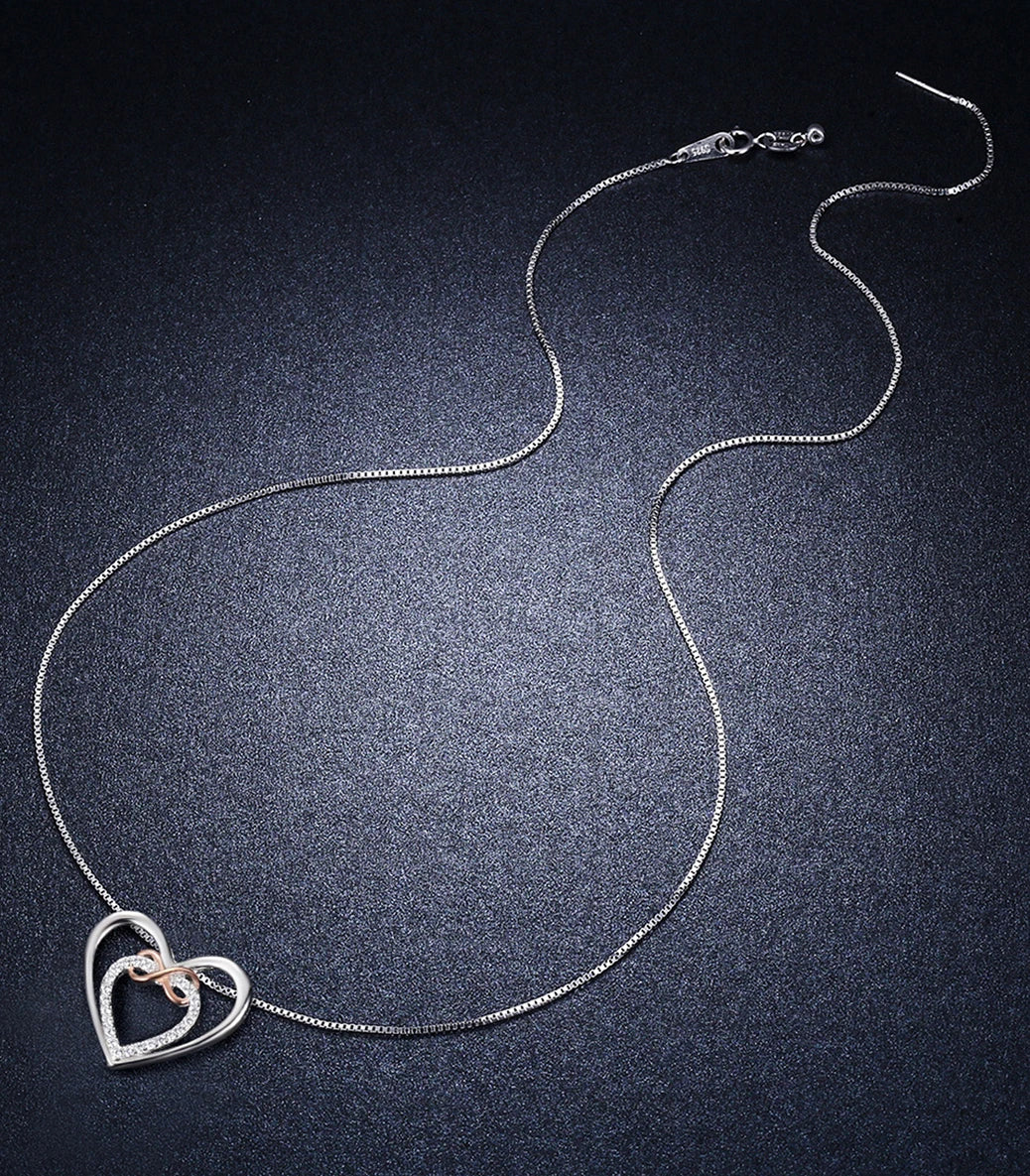 Сребърно колие с Rose Gold покритие, бял кубичен циркон и плъзгаща се, здрава, регулируема закопчалка с вграден силиконов уплътнител