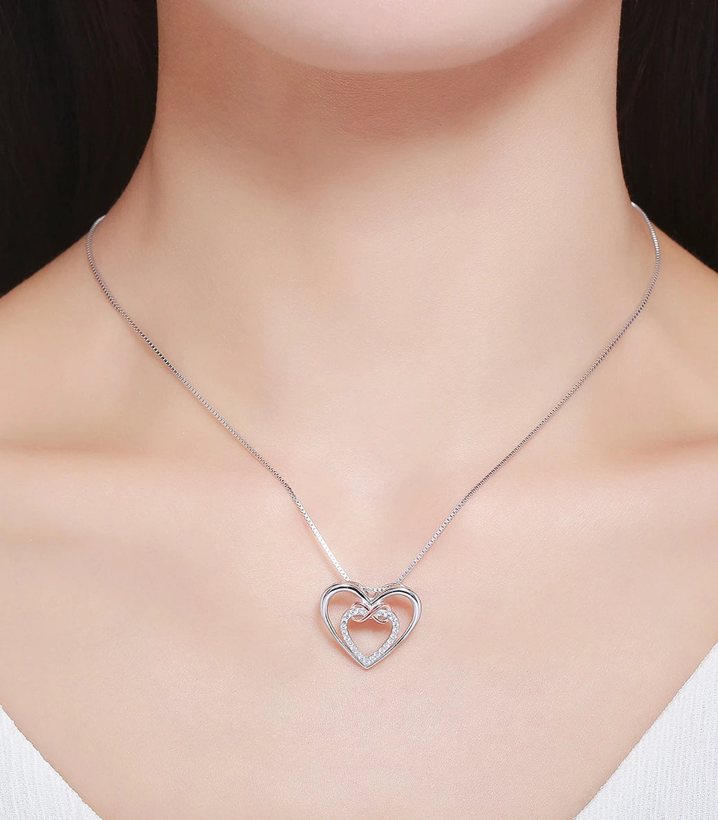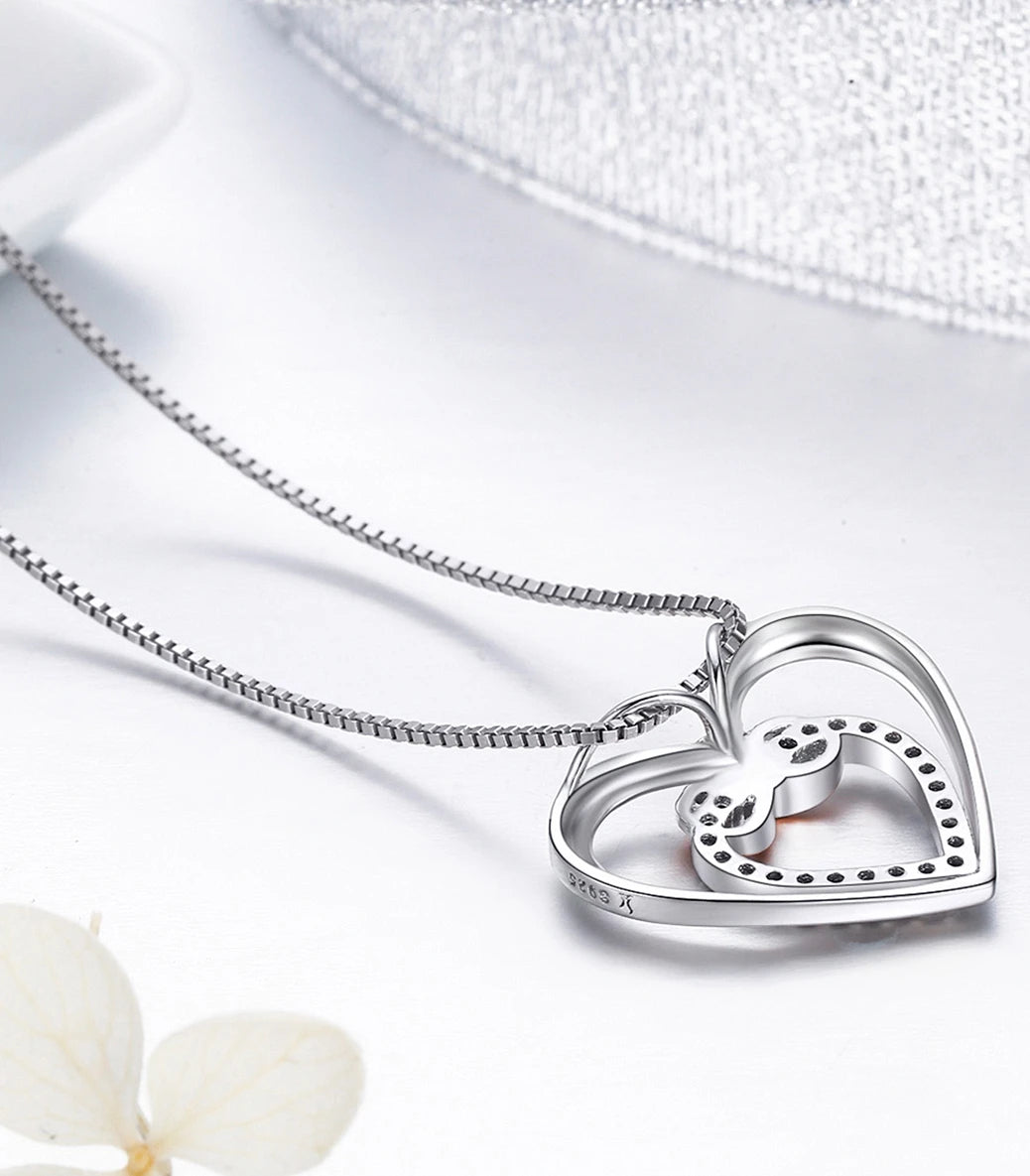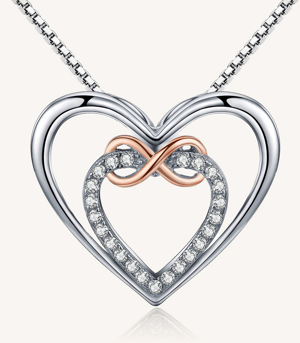 Сребърно колие с Rose Gold покритие, бял кубичен циркон и плъзгаща се, здрава, регулируема закопчалка с вграден силиконов уплътнител