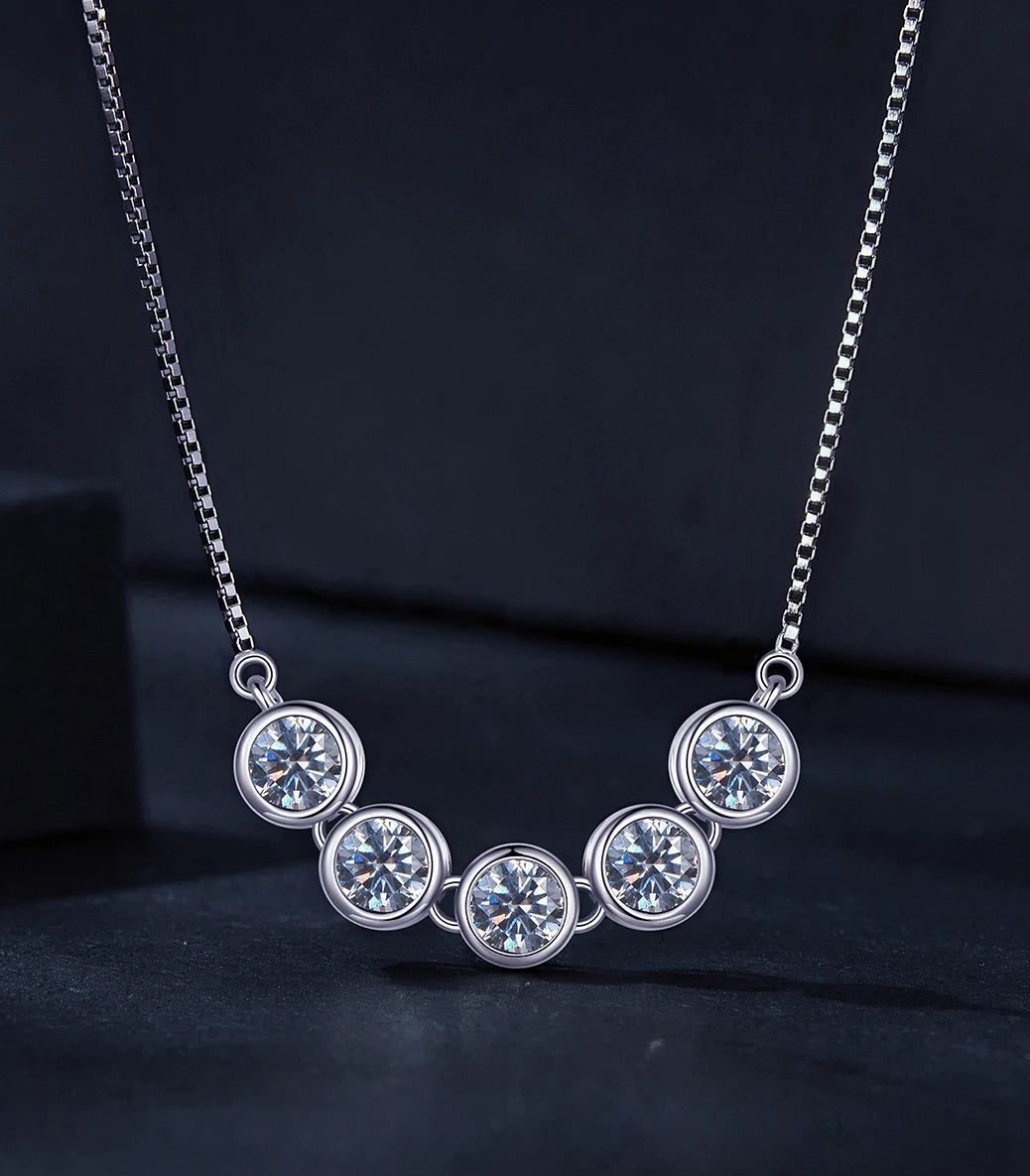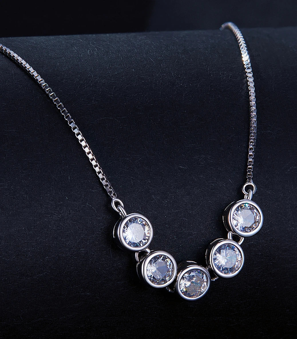 Сребърно регулируемо колие със скъпоценния камък мойсанит