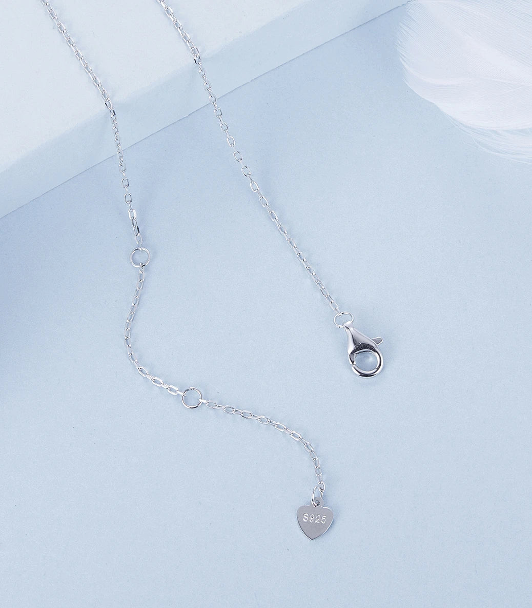 Сребърно регулируемо колие със закопчалка със захващащ механизъм и бял кубичен циркон