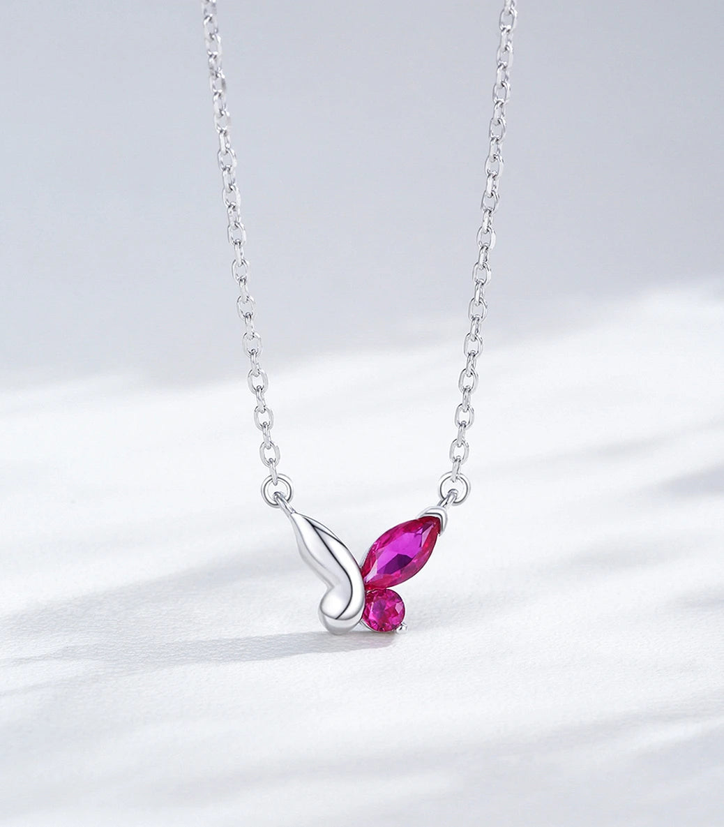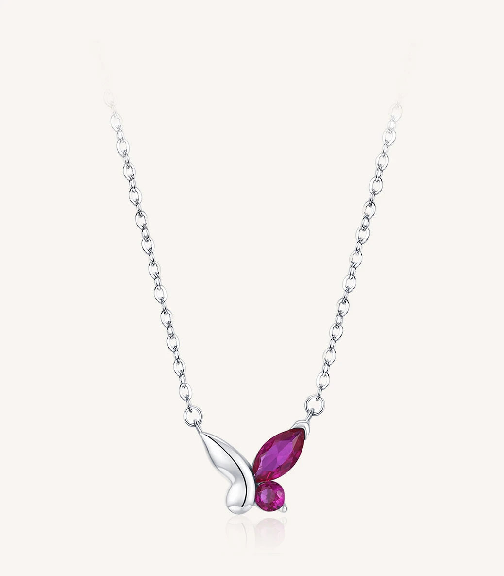 Сребърно регулируемо колие с пурпурен кубичен циркон