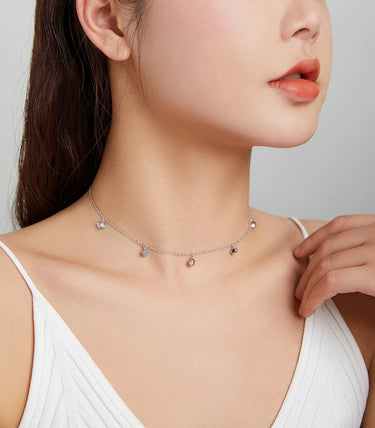 Сребърно колие със сребърни елементи с цветен кубичен циркон и плъзгаща се, здрава, регулируема закопчалка с вграден силиконов уплътнител