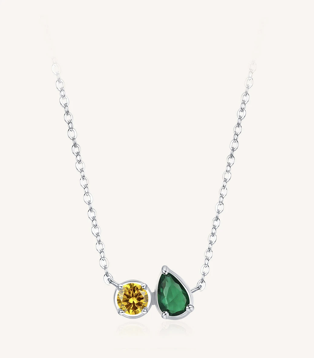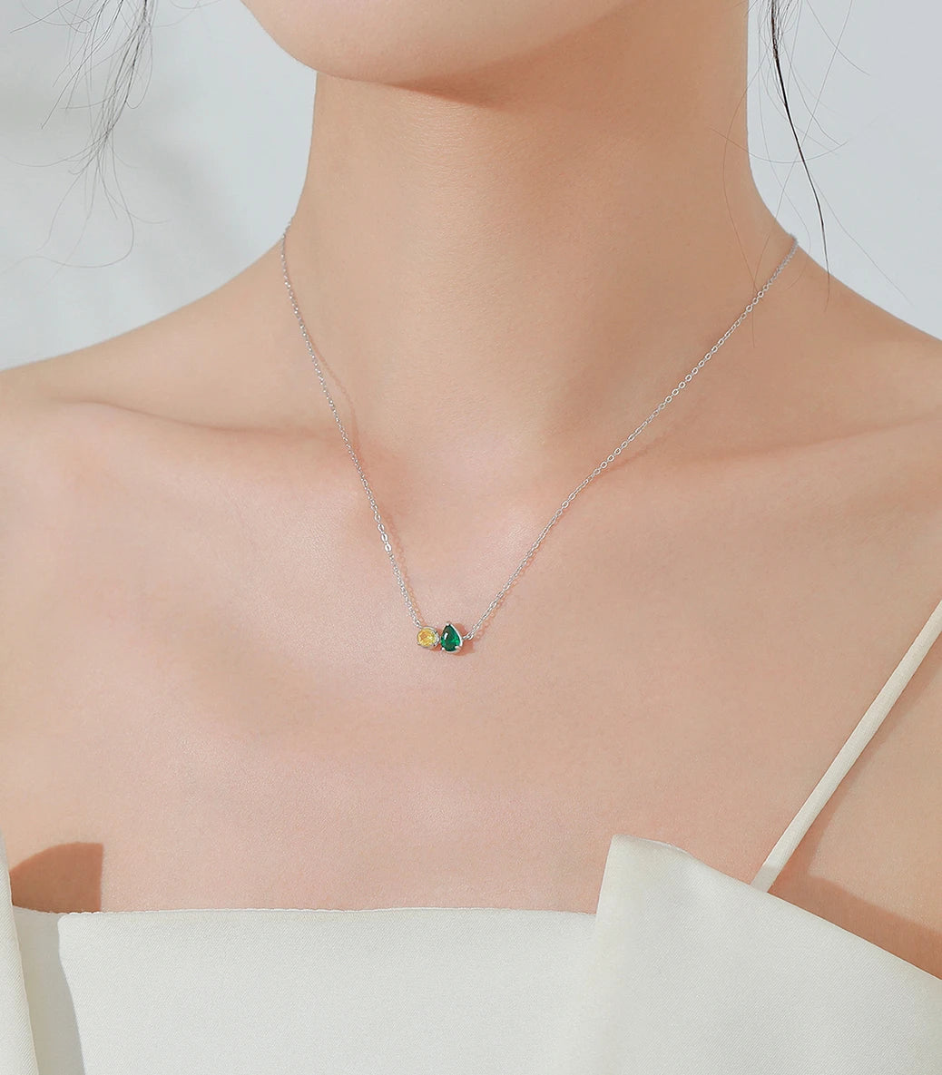 Сребърно регулируемо колие с жълт и зелен кубичен циркон