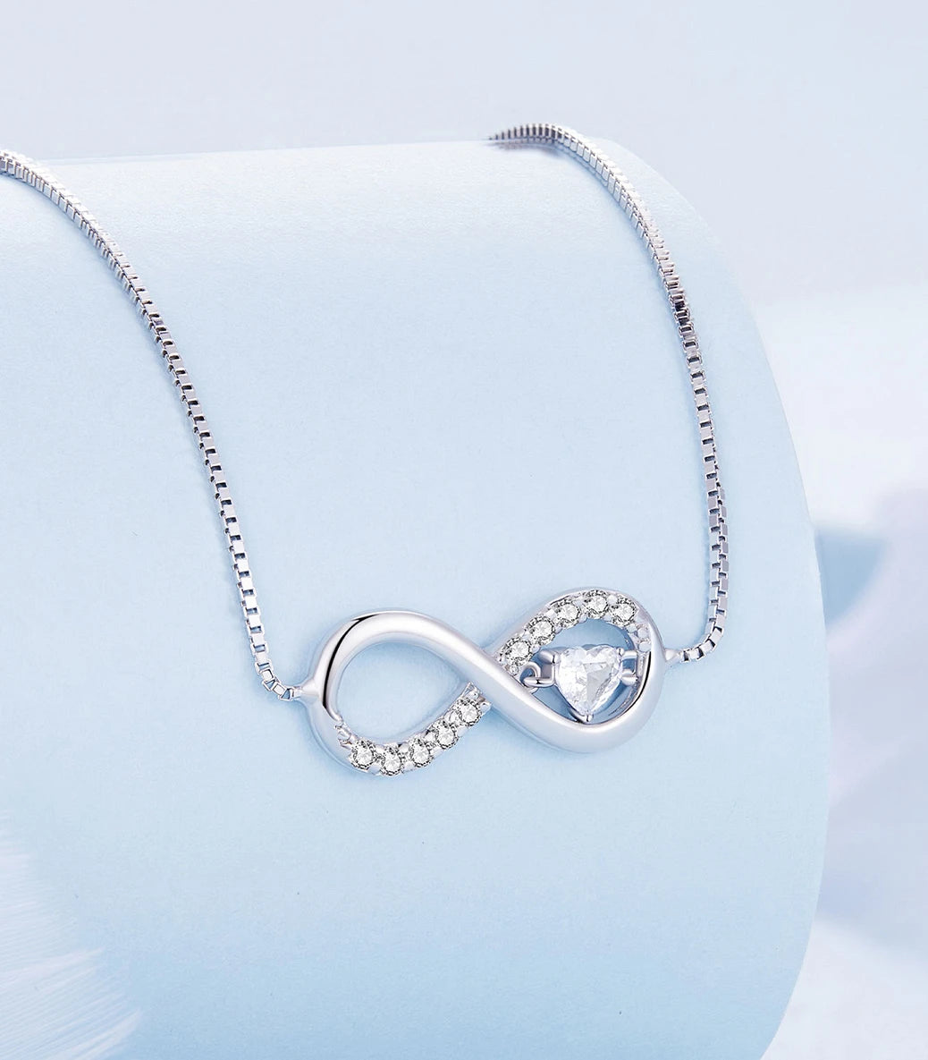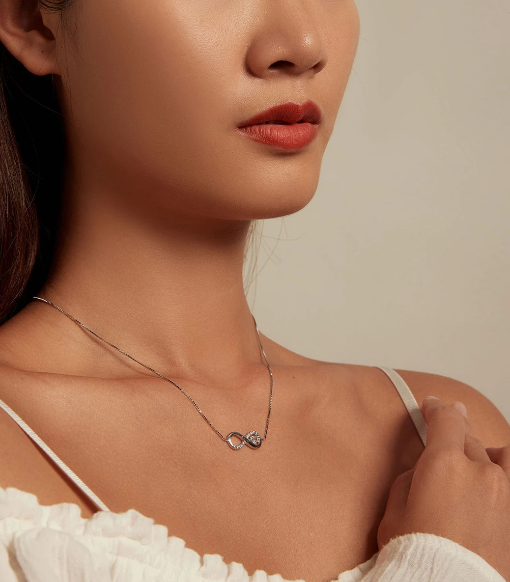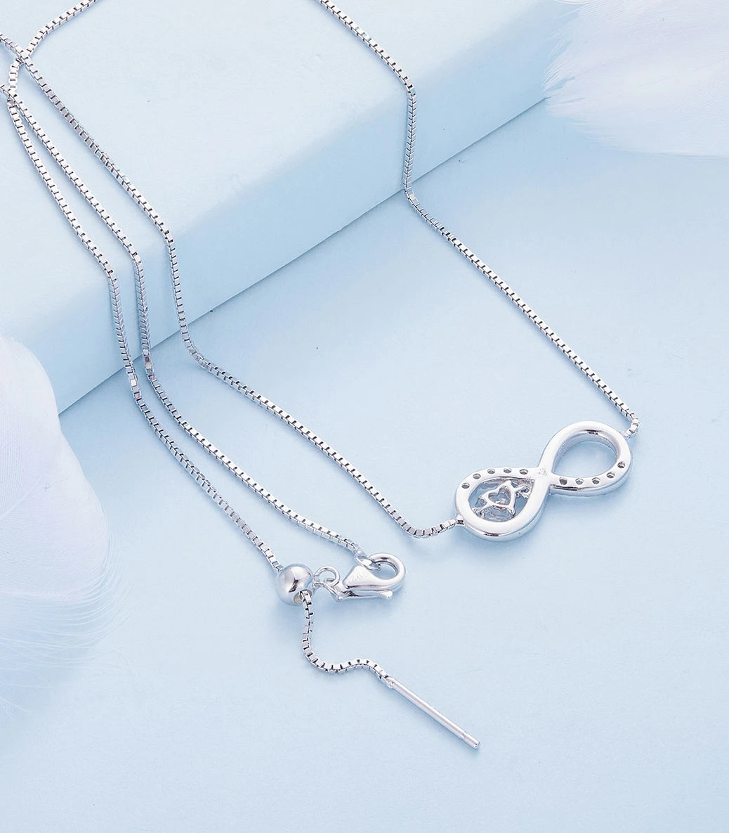 Сребърно колие с бял кубичен циркон и плъзгаща се, здрава, регулируема закопчалка с вграден силиконов уплътнител
