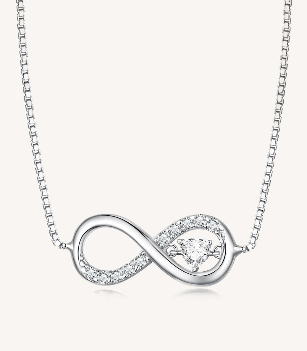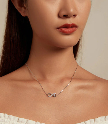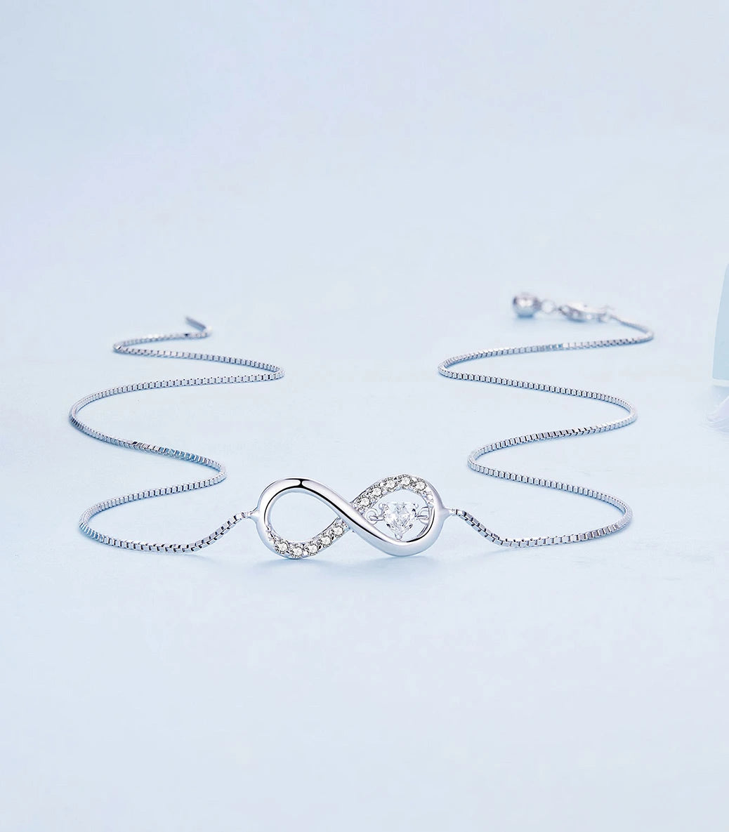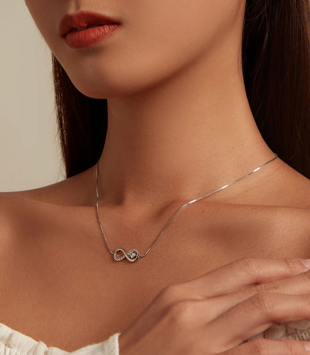 Сребърно колие с бял кубичен циркон и плъзгаща се, здрава, регулируема закопчалка с вграден силиконов уплътнител