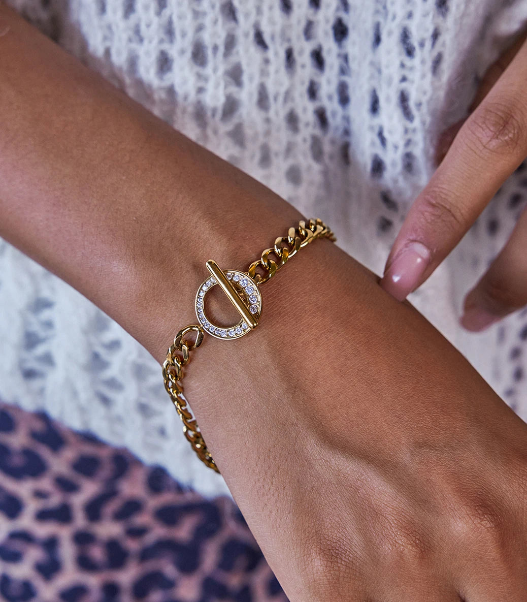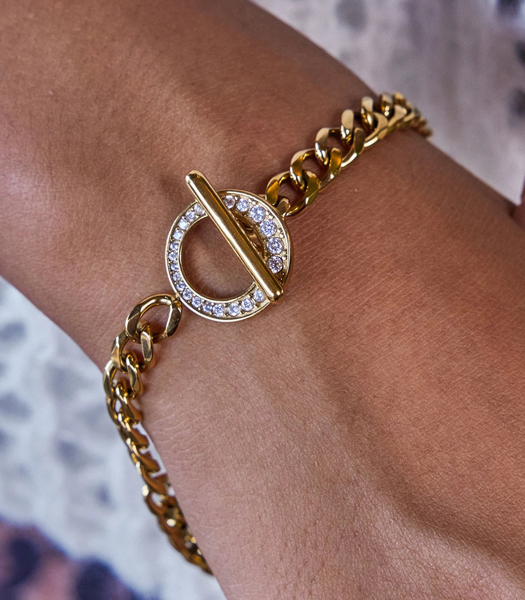 T-lock гривна с кубинска плетка и циркони