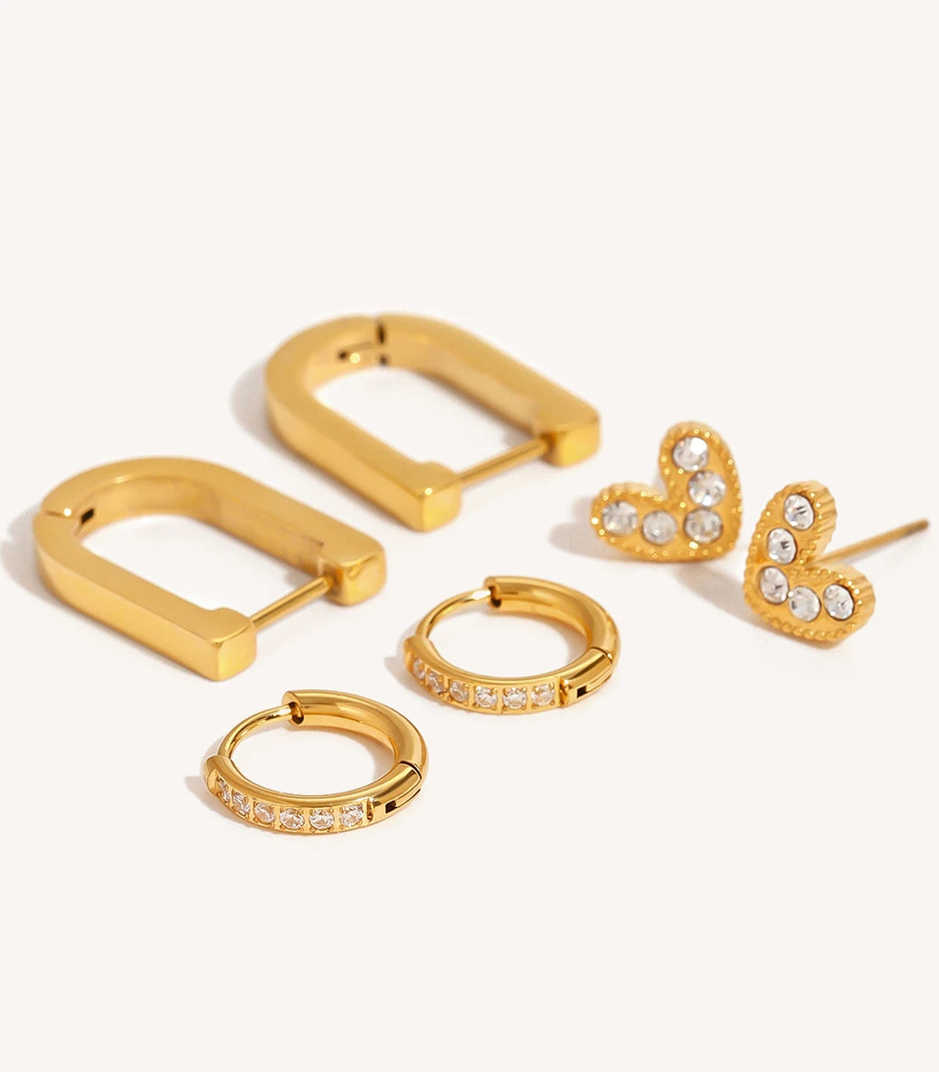 Троен сет обеци с бели циркони