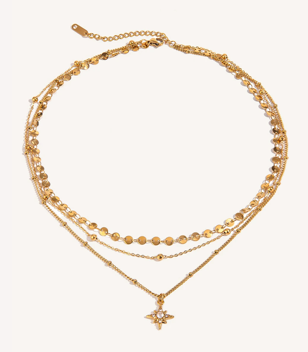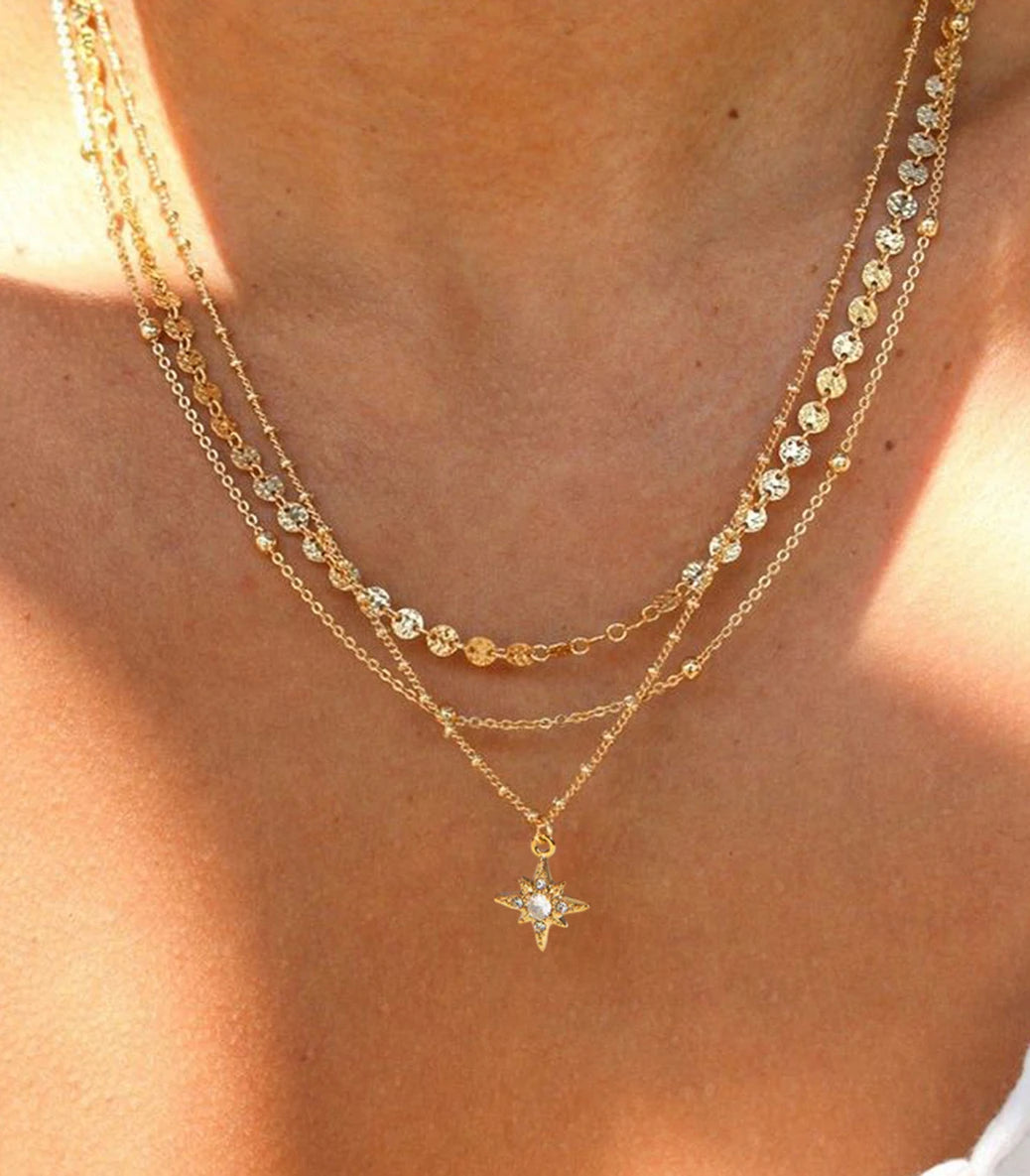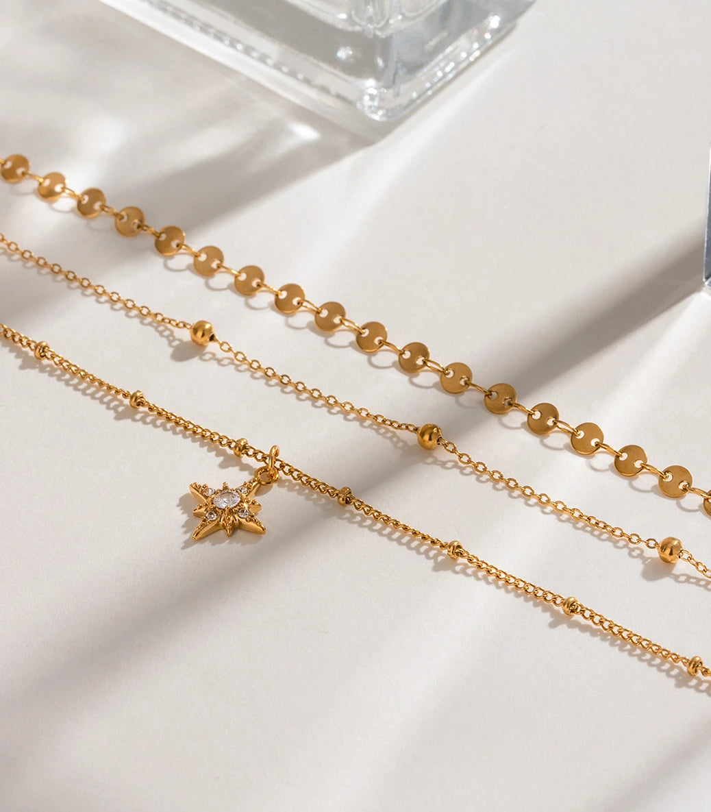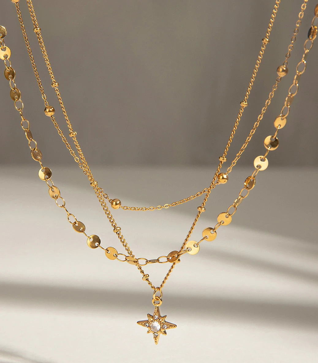 Тройно колие с мъниста и елемент звезда