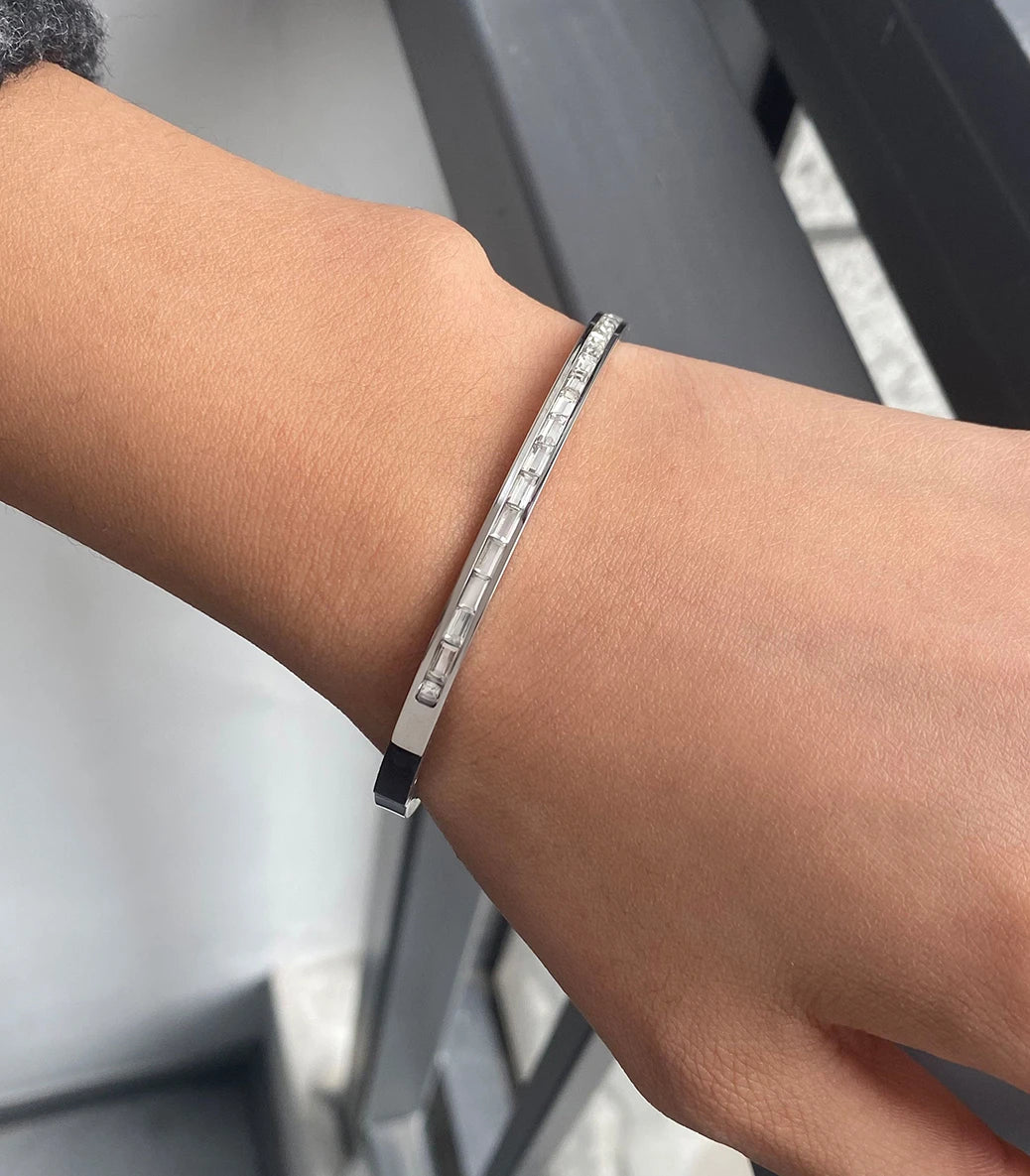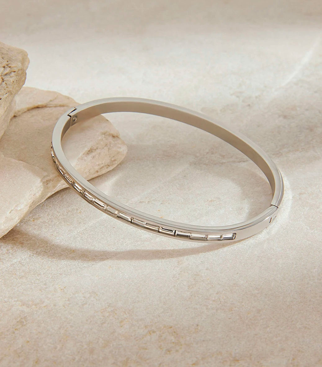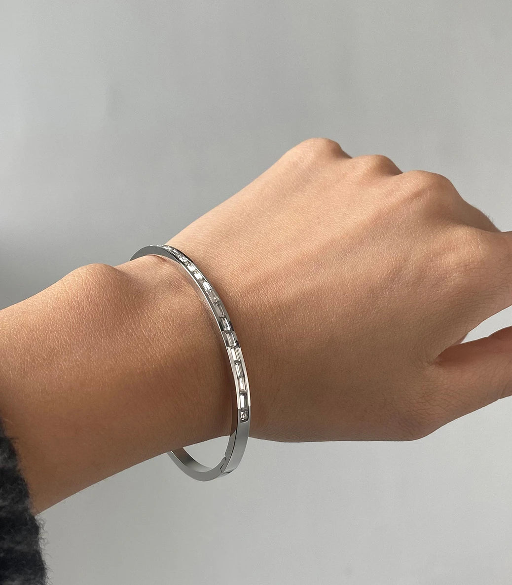 Твърда гривна snap clasp с циркони