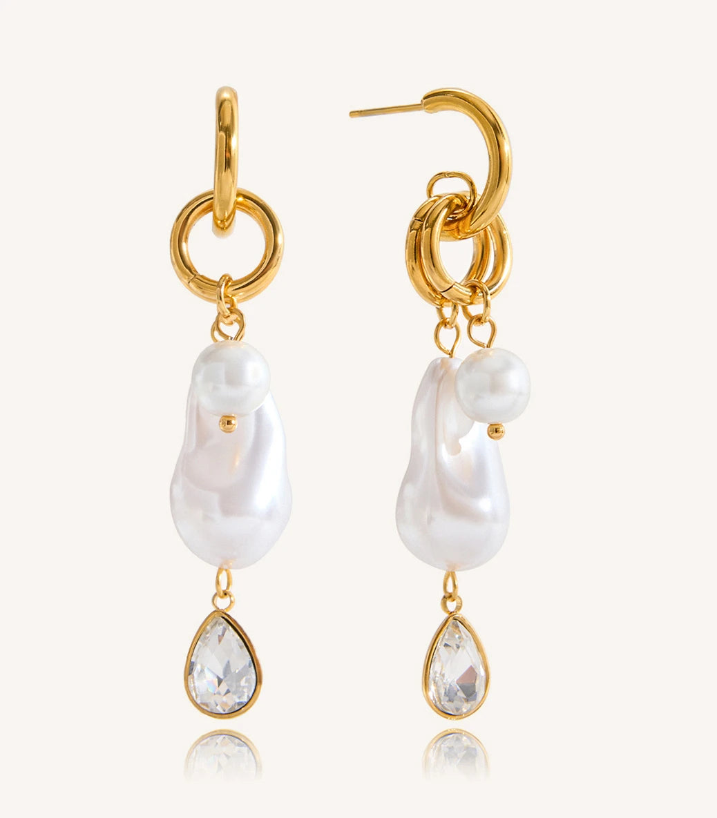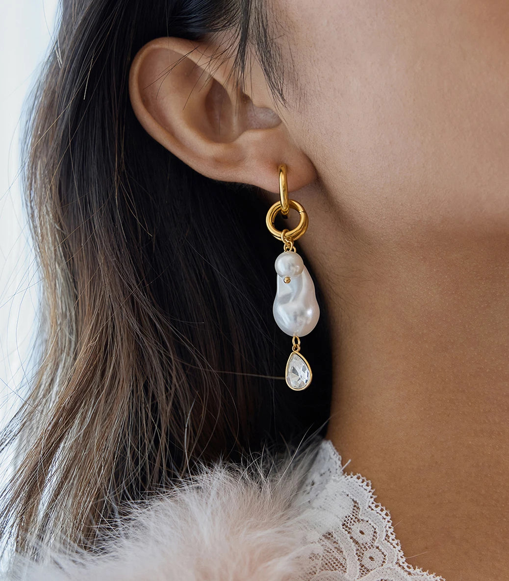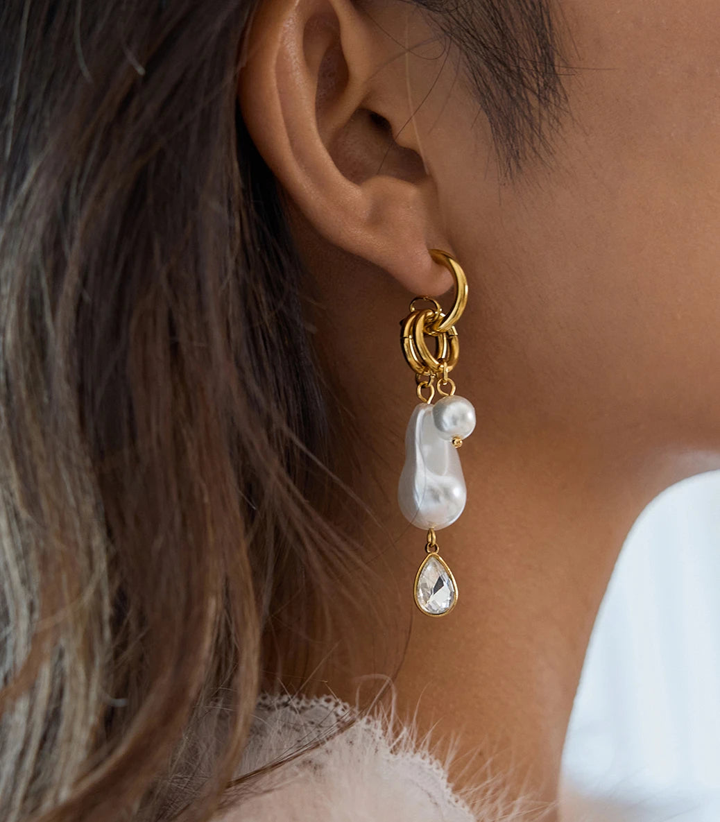 Висящи обеци на винт с барокови перли и циркон