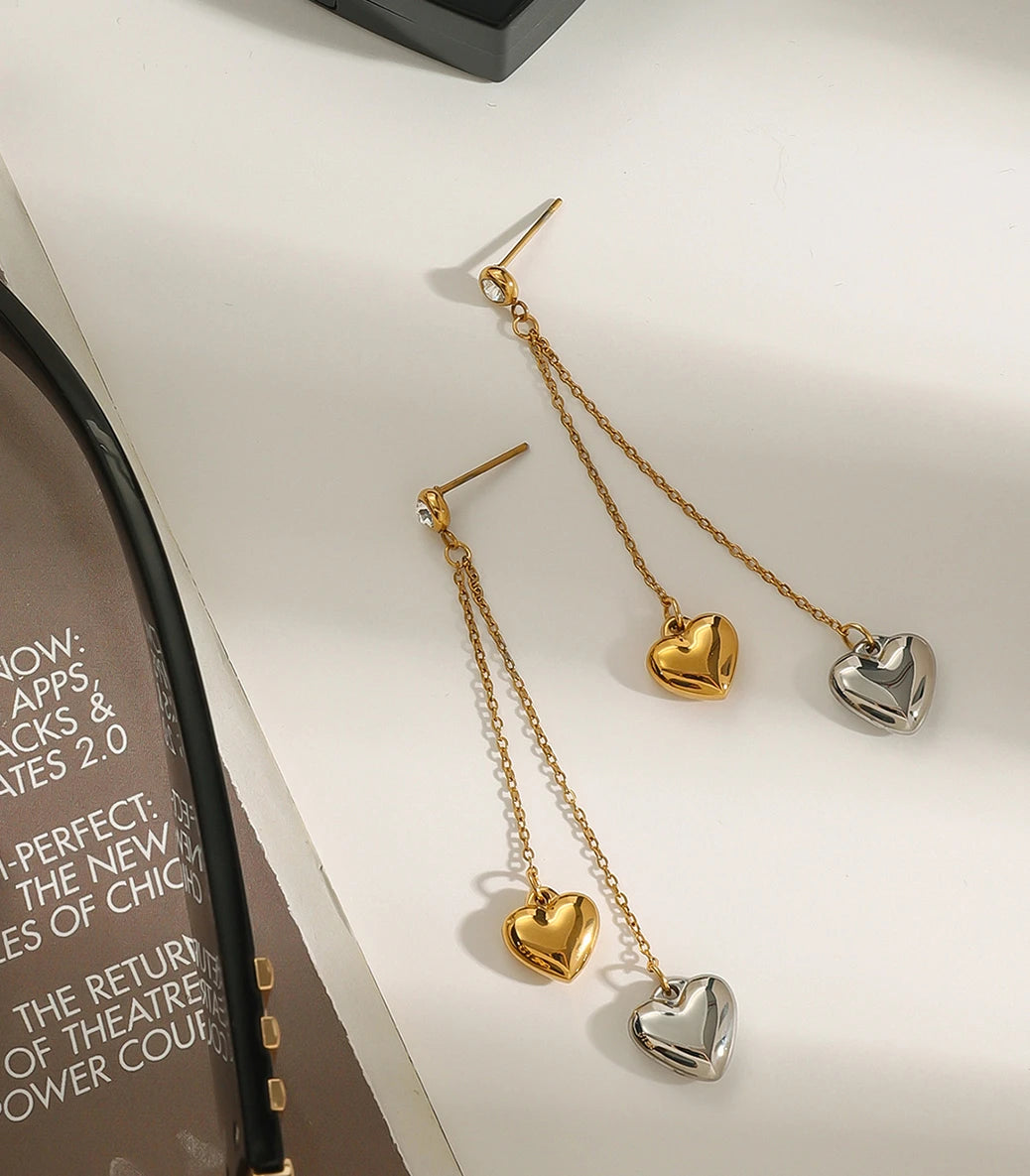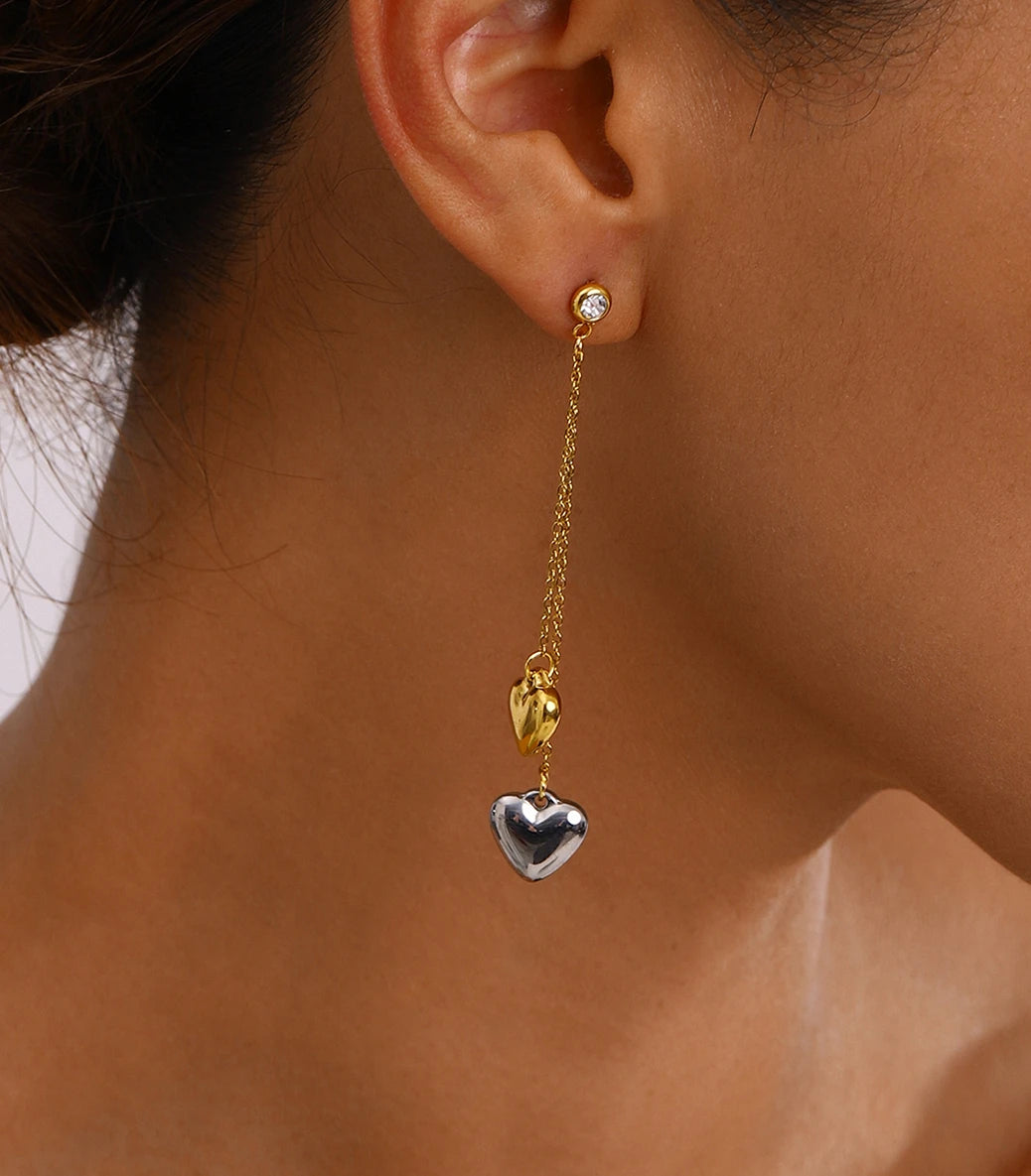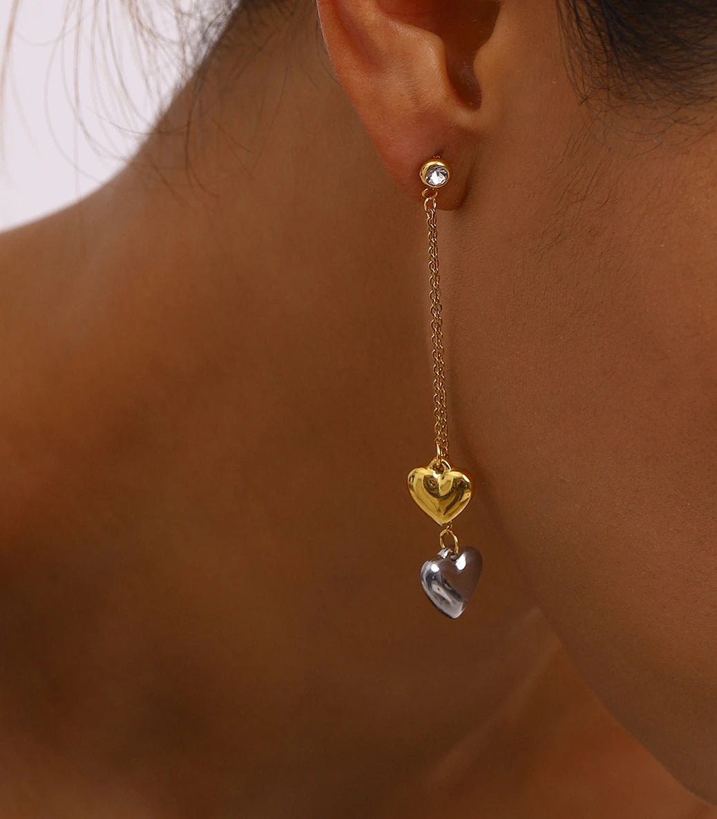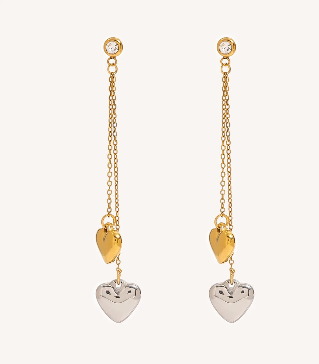 Висящи обеци на винт сърца и бял циркон