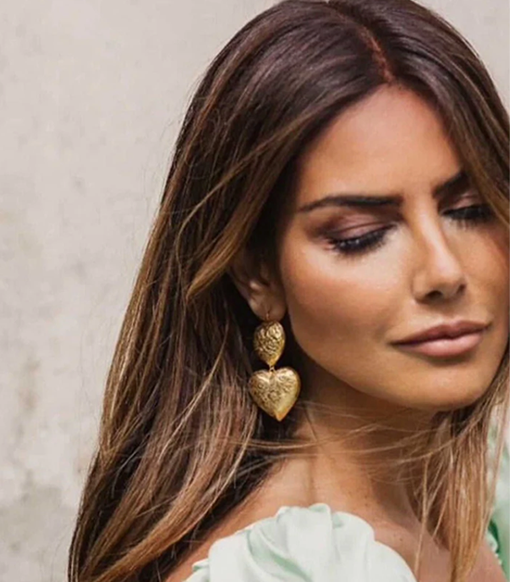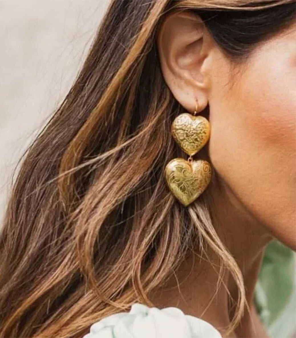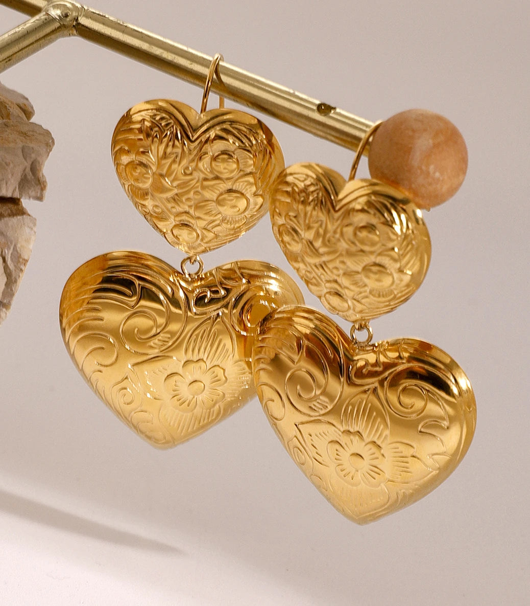 Висящи обеци сърца с флорални орнаменти